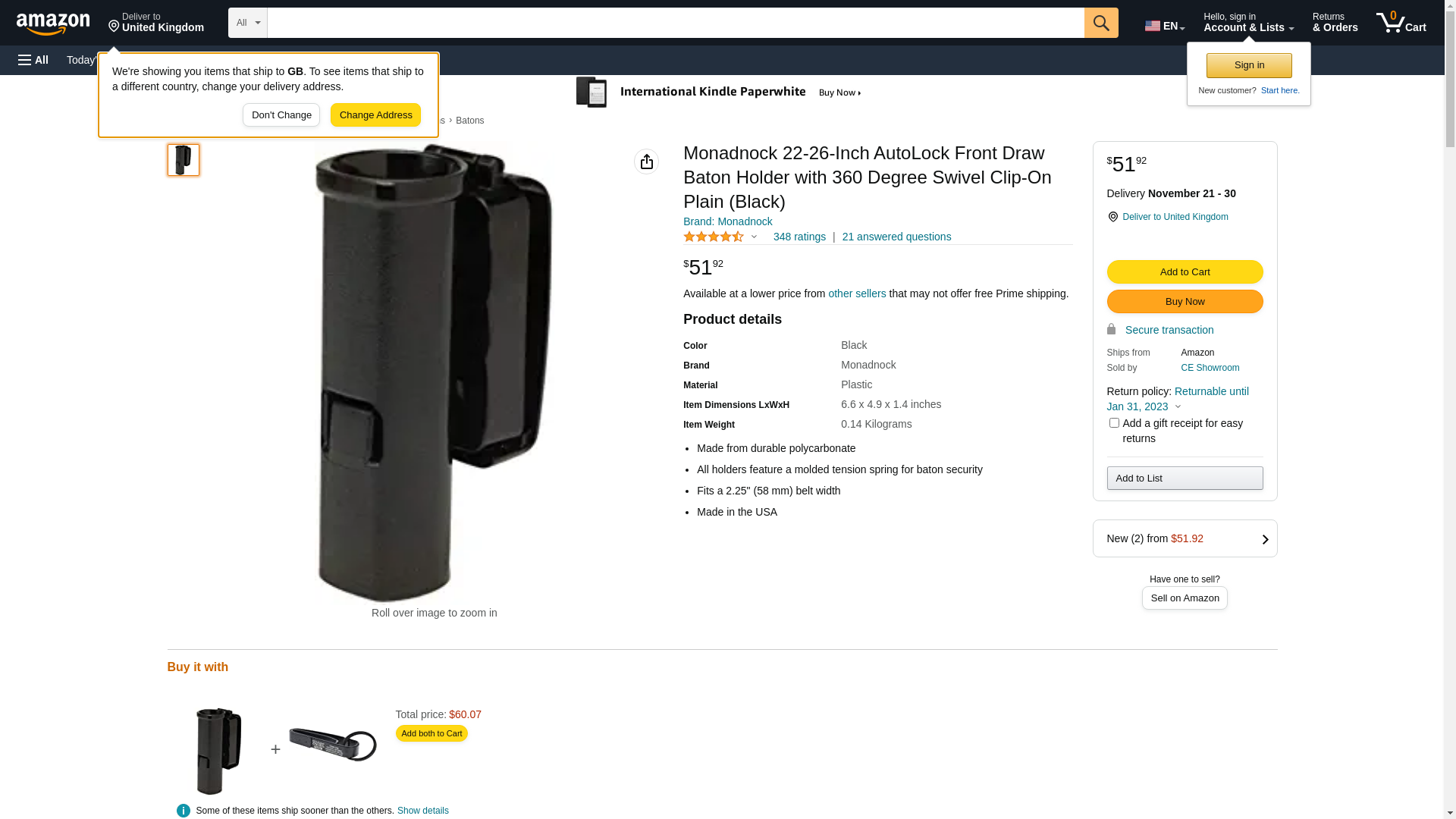 Monadnock, AutoLock 22", 26" Baton Front Draw Holder, 360 Degree Swivel, Plain Black [FC-792298009048]