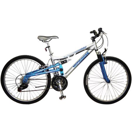 Mongoose Incline Full-Suspension Mountain Bike - 26" Wheel - Aluminum Frame - Silver, Blue