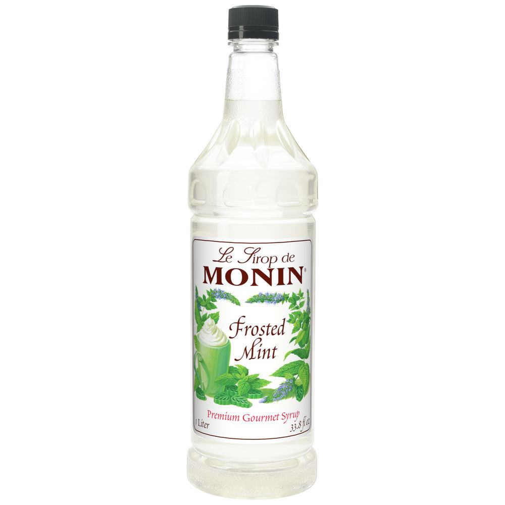 Monin - Frosted Mint Syrup, Bold Spearmint Coolness, Natural Flavors, Great for Smoothies, Sodas, Cocktails, and Teas, Non-GMO, Gluten-Free (1 Liter, 4-Pack)