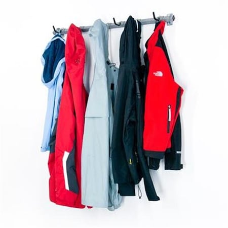 - The small coat rack uses just 3-feet of wall space and extends a mere 3" from the wall with coats hanging