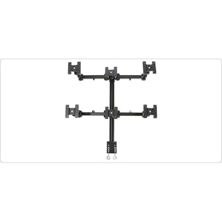 MNMO1018 <br /> <b>Features</b> <br /> <ul> <li>Material: High quality steel</li> <li>Mount shape: C-clamp</li> <li>Articulating arms</li> <li>Comes with up, down, left and right pivot</li> <li>Design: Ergonomic</li> <li>Supports 6 vesa compatible monitors</li> <li>Product Type: Desk mount</li> <li>Color: Black</li> <li>Swivel: Yes</li> <li>Tilt: Yes</li> <li>Screen Size: 20"</li> <li>Multi-Monitor: Yes</li> <li>Number of Screens: 6</li> <li>Orientation: Horizontal</li> <li>Articulating Arm Included: Yes</li> <li>Ergonomic: Yes</li> <li>Weight Capacity: 22 Pounds</li> </ul> <br /> <b>Dimensions</b> <br /> <ul> <li>Overall Height - Top to Bottom: 27.75"</li> <li>Overall Width - Side to Side: 40.78"</li> <li>Overall Depth - Front to Back: 4.96"</li> <li>Adjustable Height: Yes</li> <li>Overall Product Weight: 32 lbs</li> </ul> <br /> <b>Specifications</b> <br /> <ul> <li>VESA Compliant: Yes</li> </ul>