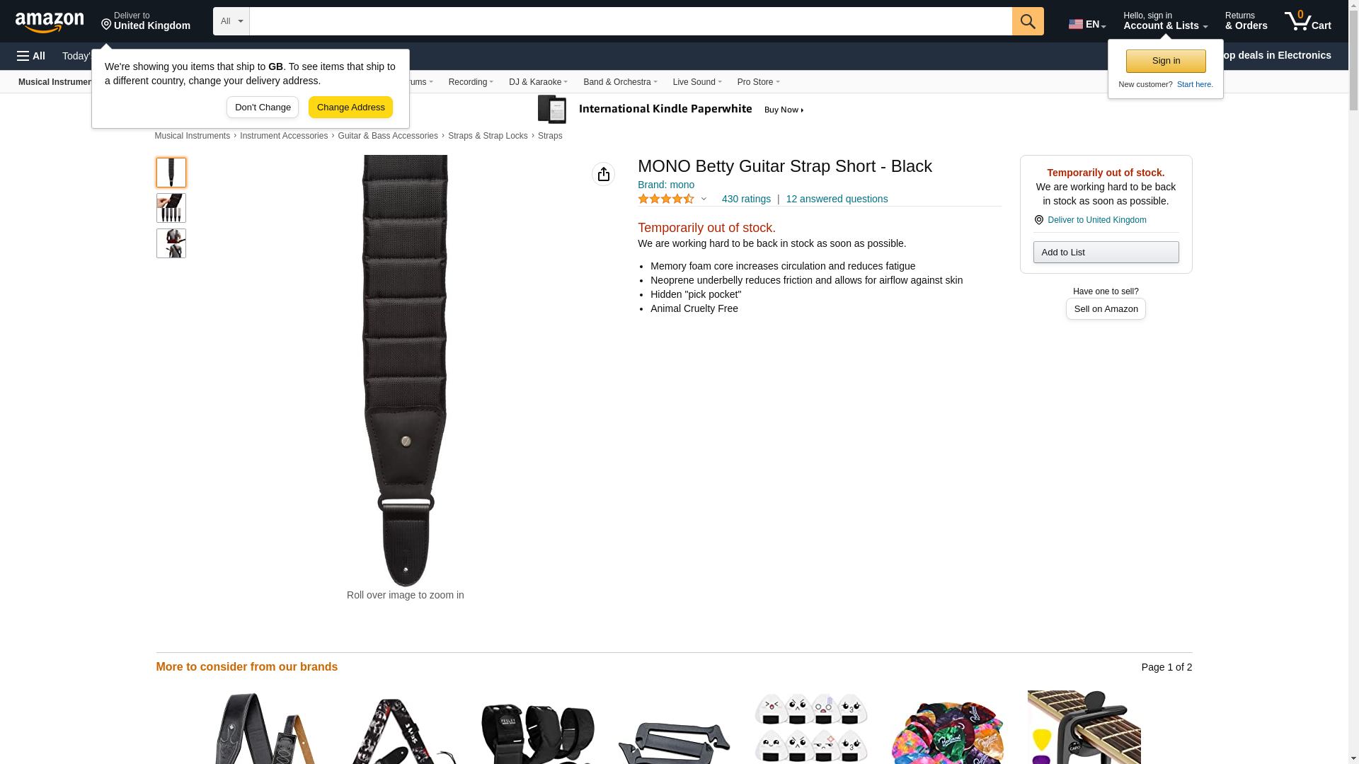 MONO Betty Guitar Strap Short - Black: Maxedbuy.com