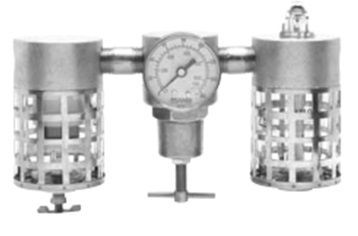 Monnier 213-1100-3 AIR LINE FILTER - REGULATOR - LUBRICATOR TRIO COMBINATION ASSEMBLY - 8 OUNCE CAPACITY, POLYCARBONATE BOWL WITH GUARD, 20 MICRON FILTER ELEMENT, 3/8 INCH NPT PORTS - MAXIMUM PRESSURE RATING 150 PSI