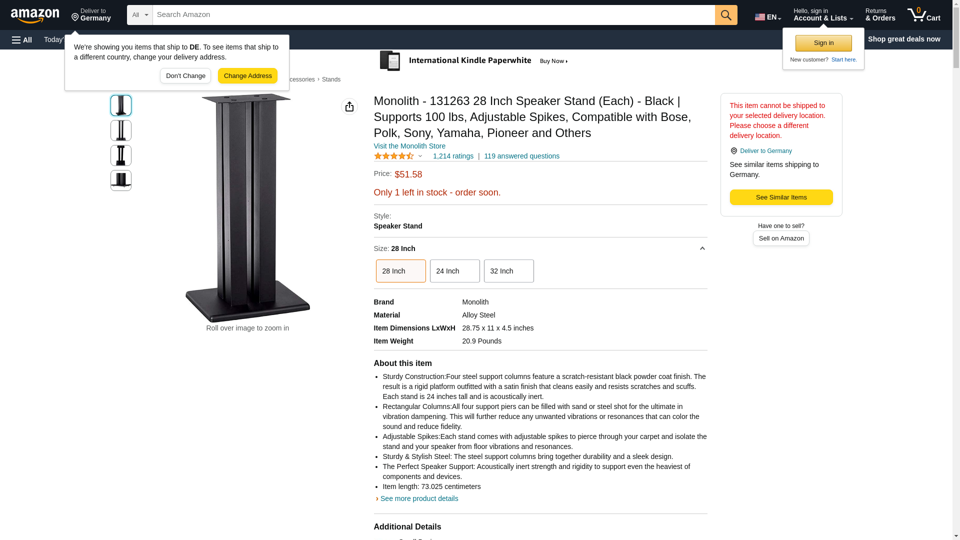 Monolith 28 Inch Speaker Stand (Each) - Black | Supports 100 lbs, Adjustable Spikes, Compatible with Bose, Polk, Sony, Yamaha, Pioneer and Others: Maxedbuy.com