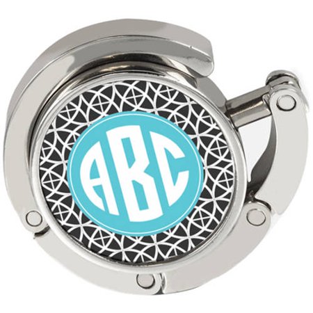 <br /> <b>Round Geo Trellis Monogrammed Folding Purse Hanger:</b> <ul> <li>Makes an attractive, practical and personal gift for bridesmaids, professional women and fashion designers</li> <li>Personalized with any 3 initials of your choice</li> <li>Purse hangers also make great gifts for moms, aunts, sisters, grandma and friends</li> <li>Holds purses up to 15 lbs</li> </ul>