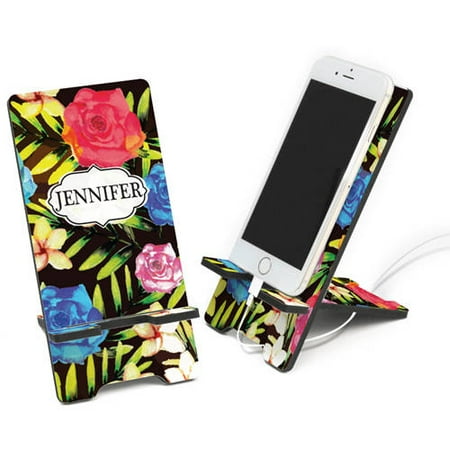 <br /> <b>Blue Roses Design Personalized Cell Phone Stand:</b> <ul> <li>Blooming, practical and useful item</li> <li>Can be used at work, school and more</li> <li>Can also be slipped easily into your handbag and whipped out when needed</li> <li>Elegantly designed</li> <li>Durable, stable and portable</li> <li>Made of 1/4" thick wood</li> <li>Design is permanent, vibrant and glossy</li> <li>Phone can stand horizontally or vertically for easy viewing</li> <li>Measures: 3.25" x 0.25" x 6.75"</li> <li>Opening at bottom for charging cord</li> <li>Design only appears on one side</li> </ul>
