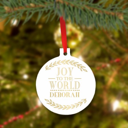 <br /> <b> Personalized Joy World Christmas Tree Ornament:</b> <ul> <li>Please enter personalization up to 10 characters</li> <li>Overall size: 3"L x 3.37"H</li> <li>Aluminum</li> </ul>