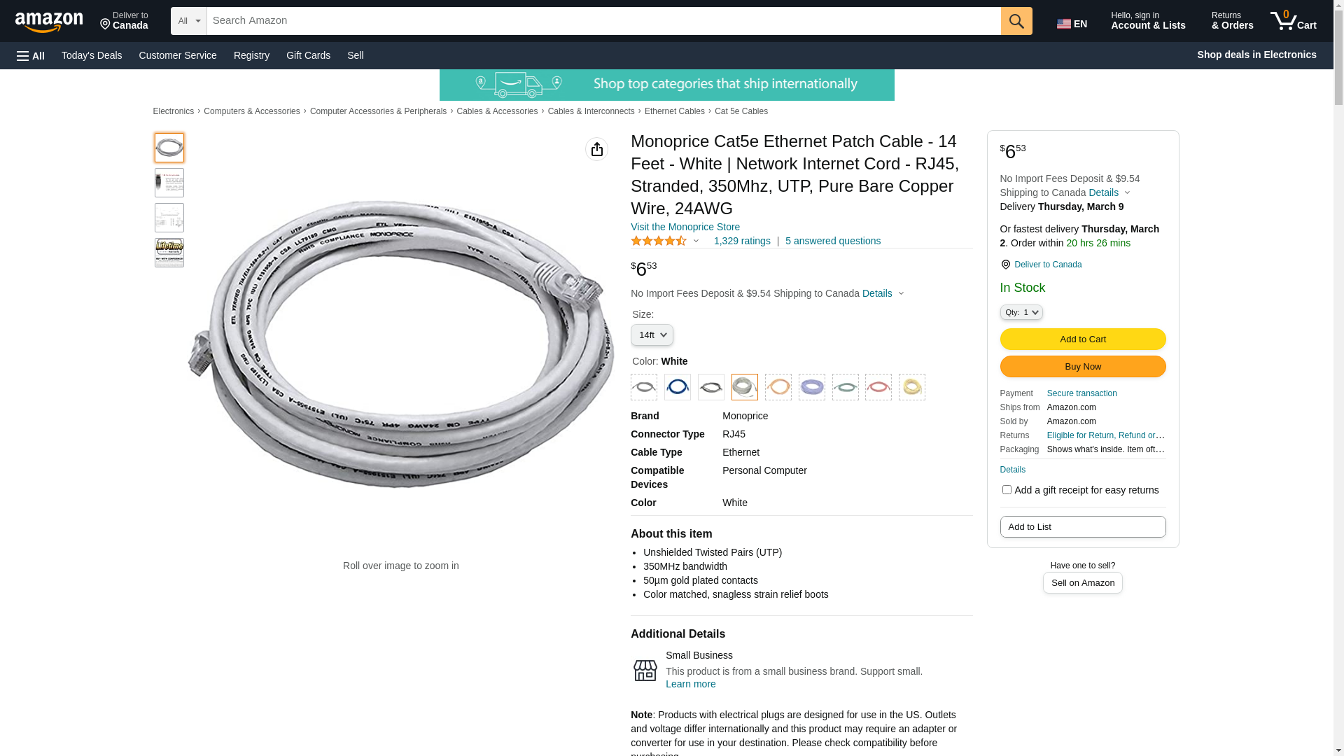 Monoprice 14FT 24AWG Cat5e 350MHz UTP Bare Copper Ethernet Network Cable - White. Monoprice Cat5e fixed length networ...