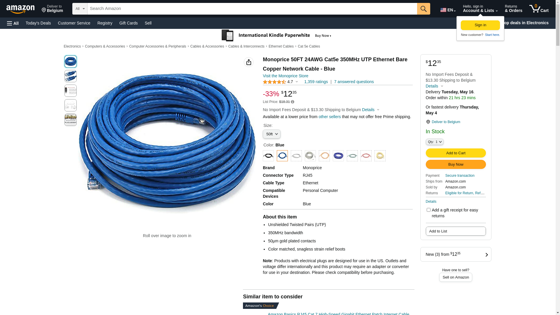 Monoprice 50FT 24AWG Cat5e 350MHz UTP Ethernet Bare Copper Network Cable - Blue. Monoprice Cat5e fixed length network...