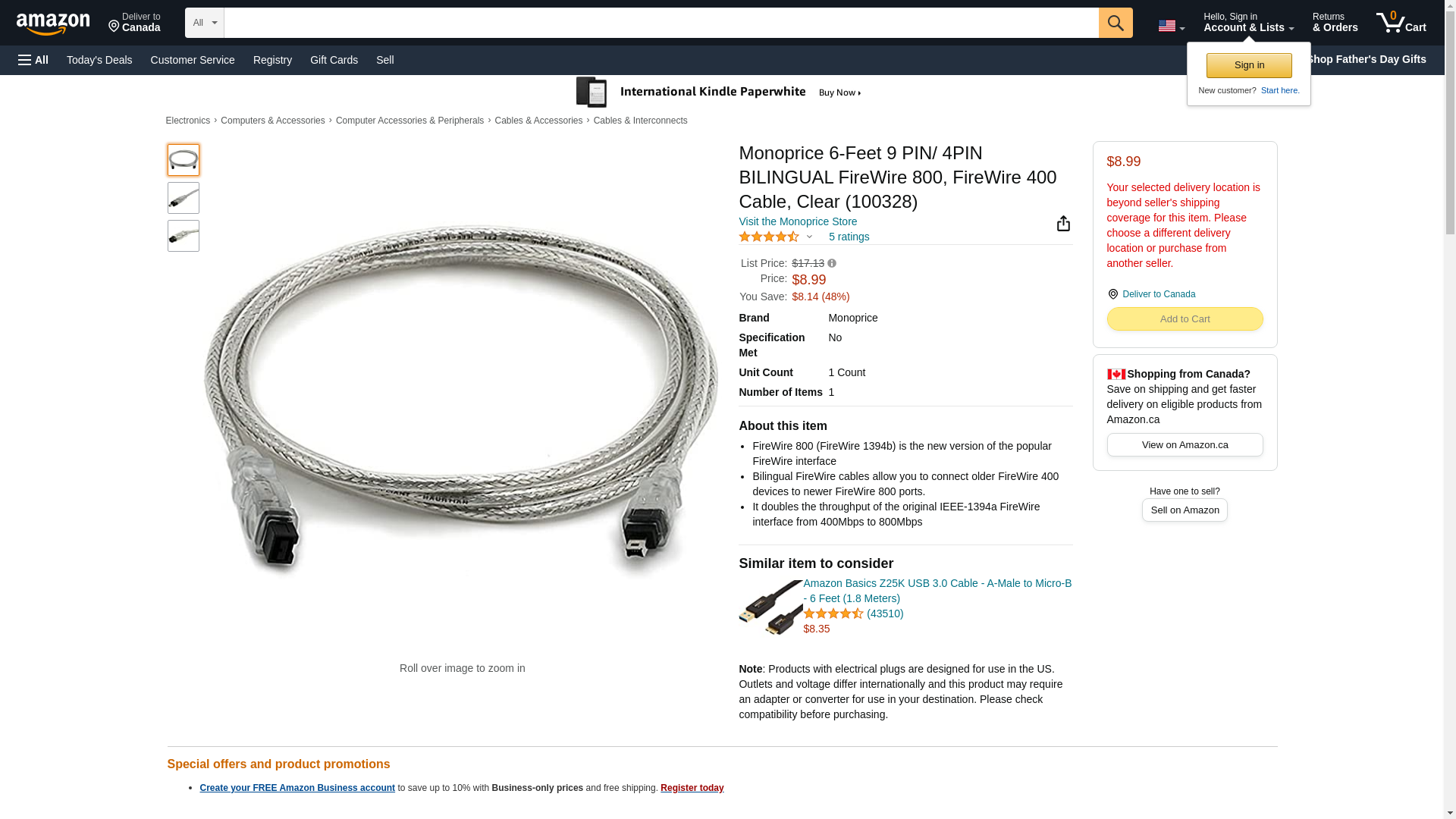 Monoprice 6-Feet 9 PIN/ 4PIN BILINGUAL FireWire 800, FireWire 400 Cable, Clear (100328). FireWire 800 (FireWire 1394b...