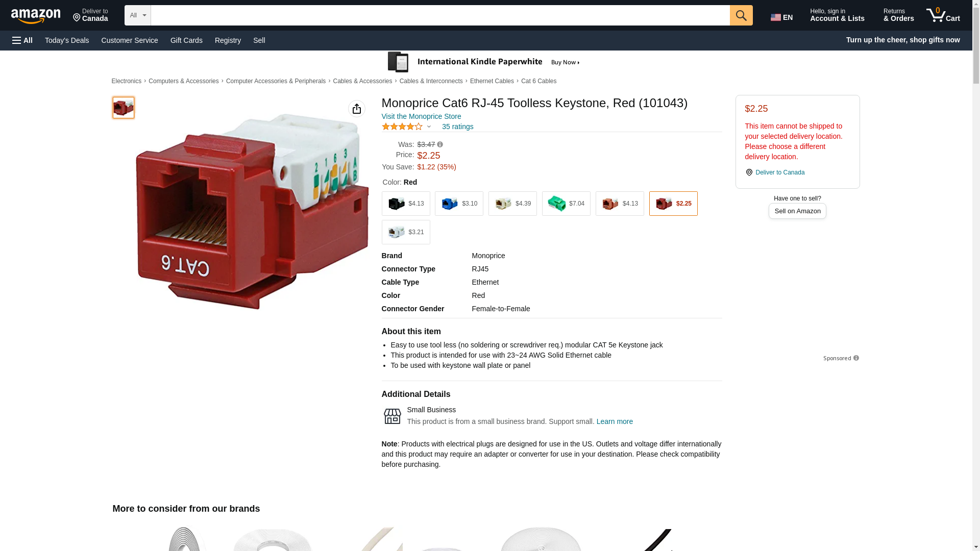Monoprice Cat6 RJ-45 Toolless Keystone, Red (101043) (2 Pack)