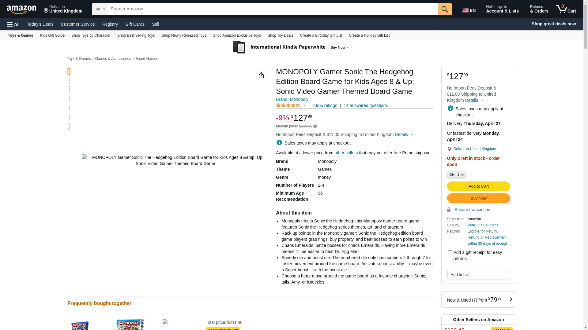 - Monopoly meets Sonic the Hedgehog: this Monopoly gamer board game features Sonic the Hedgehog series themes, art, and characters