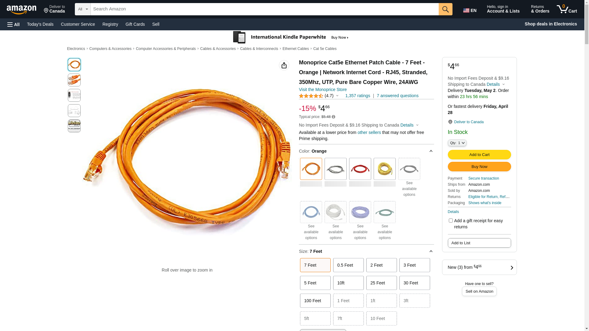 Monoprice Cat5e Ethernet Patch Cable - 7 Feet - Orange | Network Internet Cord - RJ45, Stranded, 350Mhz, UTP, Pure Bare Copper Wire, 24AWG