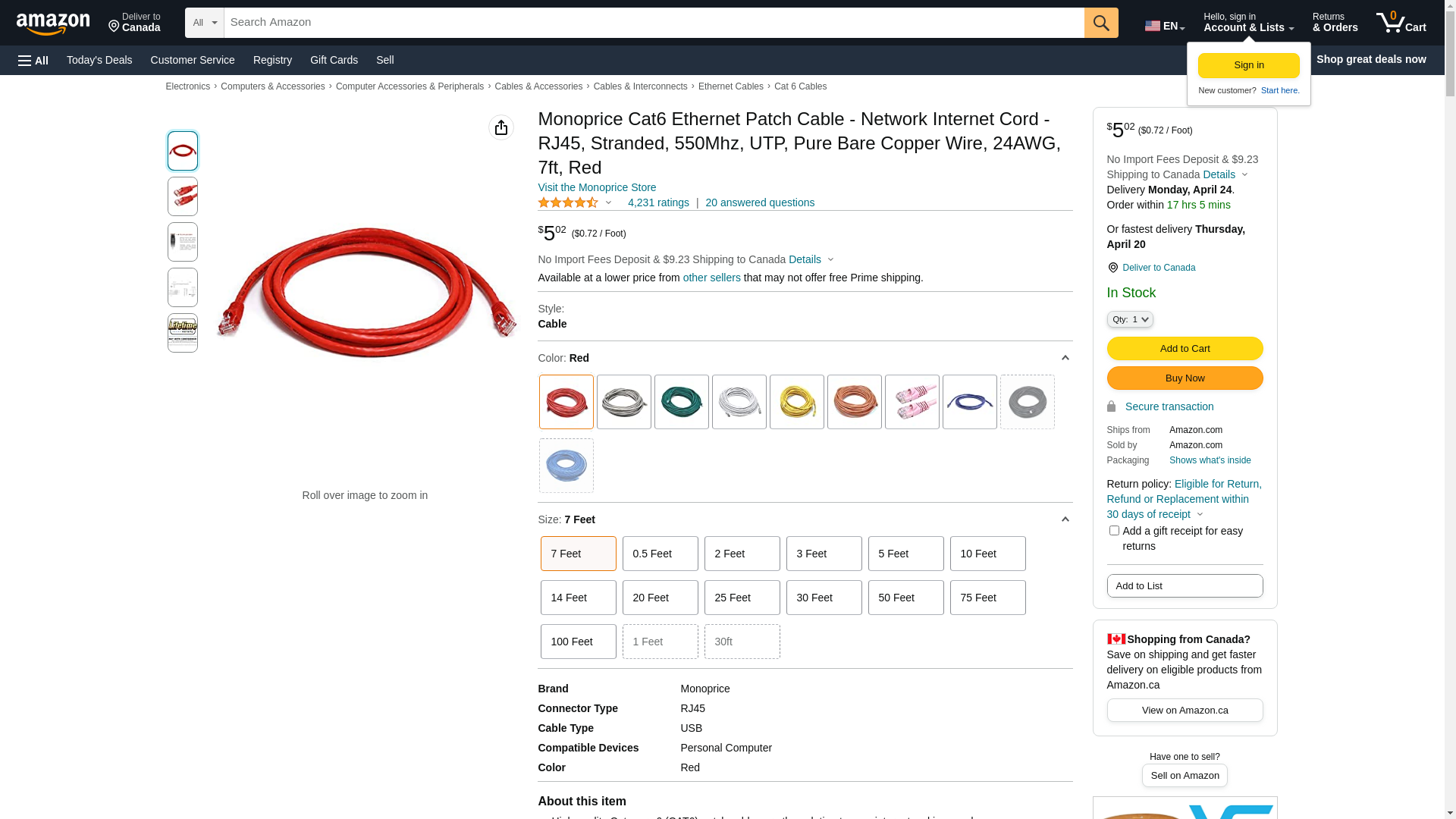 Monoprice 102304 7-Feet 24AWG Cat6 550MHz UTP Ethernet Bare Copper Network Cable, Red (102304). High quality Category...