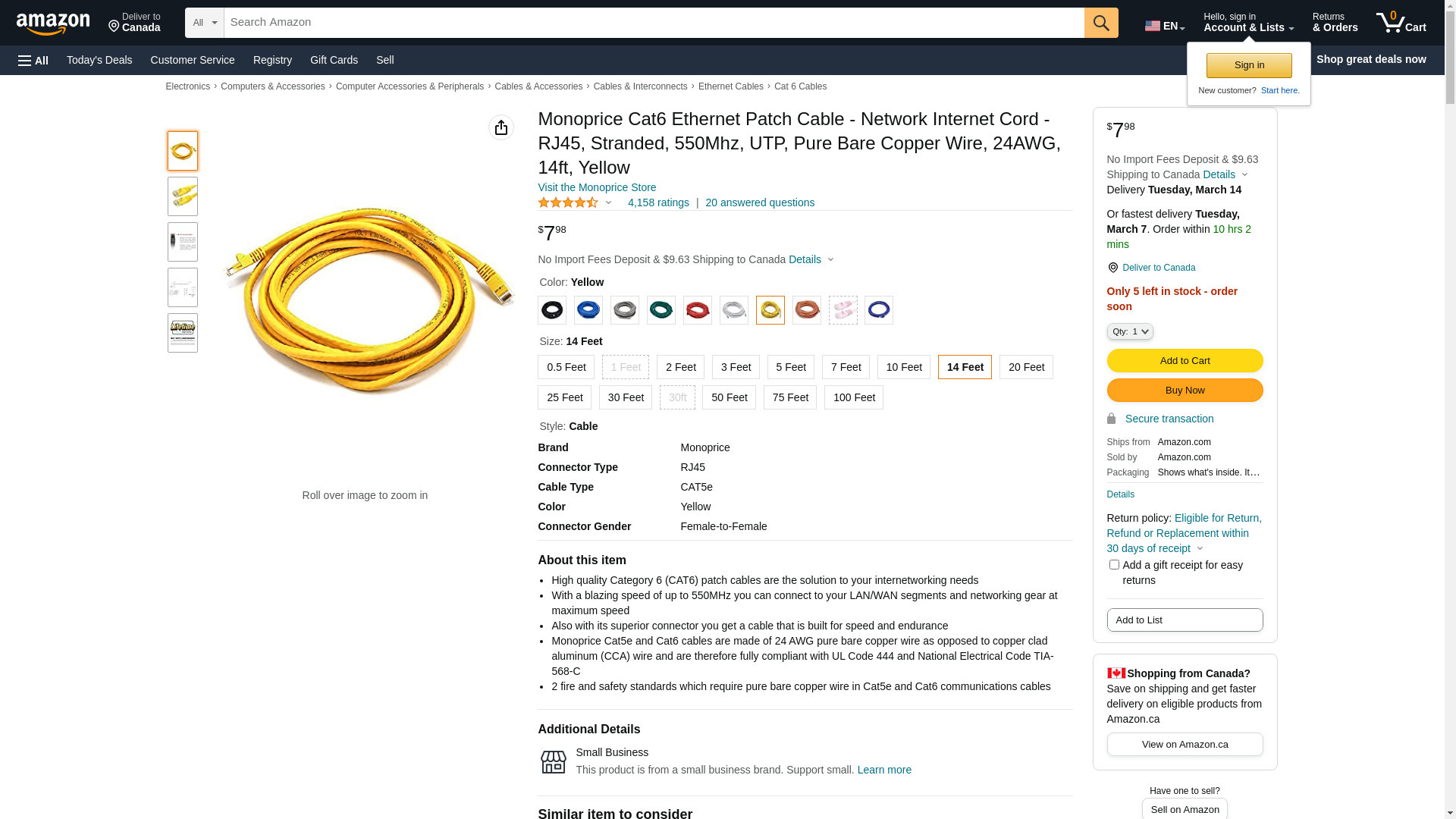 Monoprice Cat6 Ethernet Patch Cable - Snagless RJ45, Pure Bare Copper, 550MHz, UTP, 24AWG, 14 Feet, Yellow - Fullboot Series