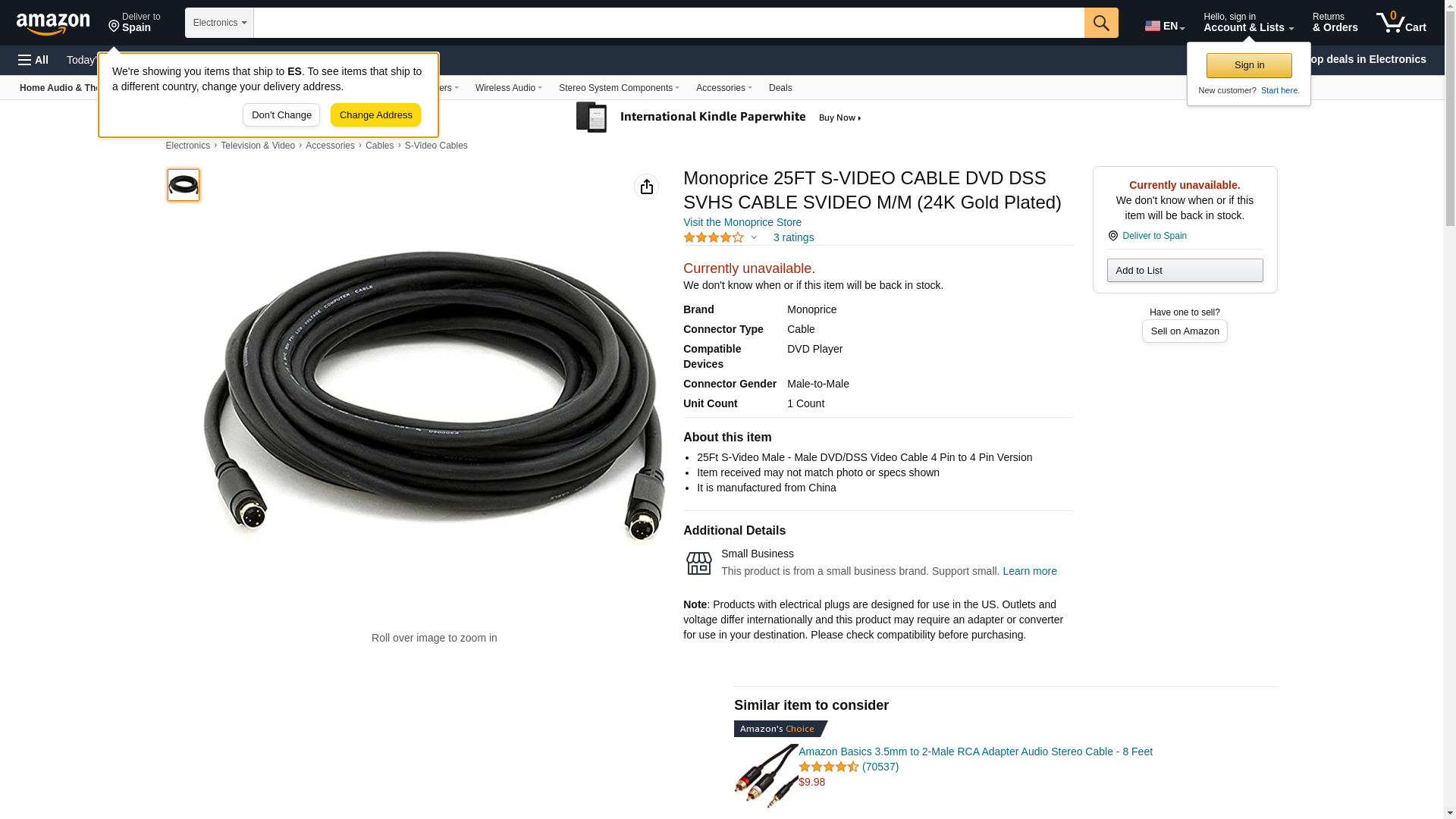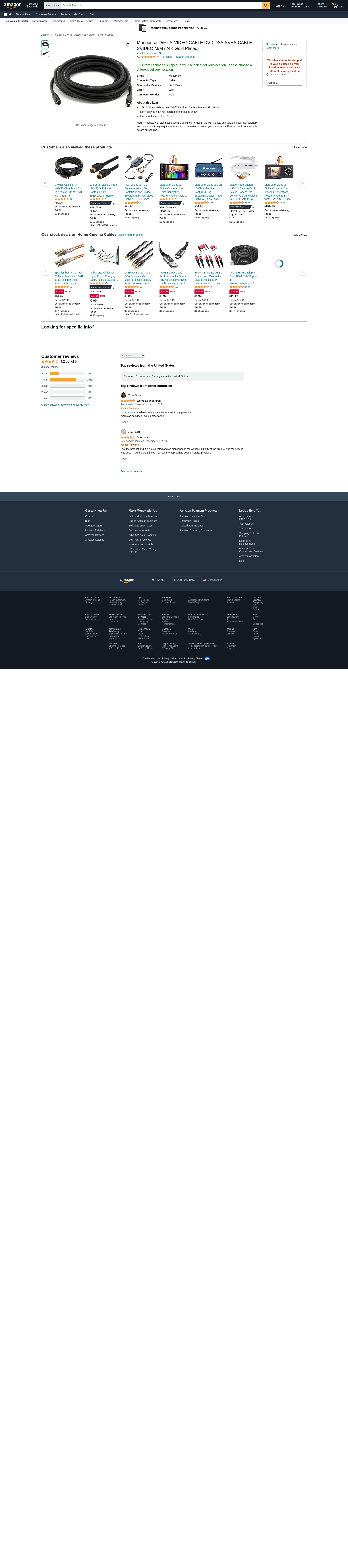Monoprice 25FT S-VIDEO CABLE DVD DSS SVHS CABLE SVIDEO M/M (24K Gold Plated). 25Ft S-Video Male - Male DVD/DSS Video ...