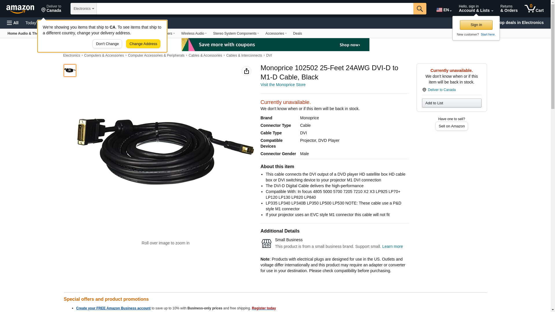 Monoprice 102502 25-Feet 24AWG DVI-D to M1-D Cable, Black. This cable connects the DVI output of a DVD player HD sate...