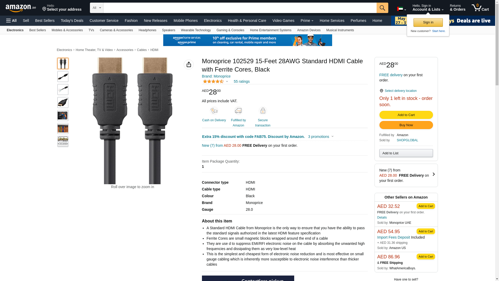 Monoprice 102529 15-Feet 28AWG Standard HDMI Cable with Ferrite Cores, Black. A Standard HDMI Cable from Monoprice is...