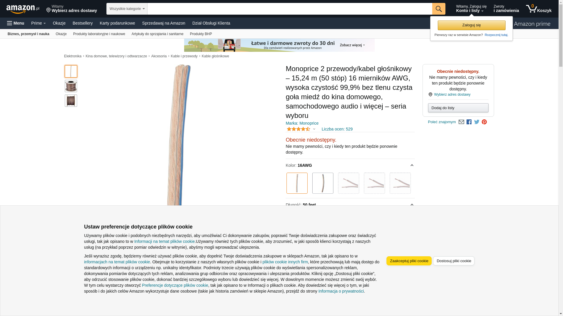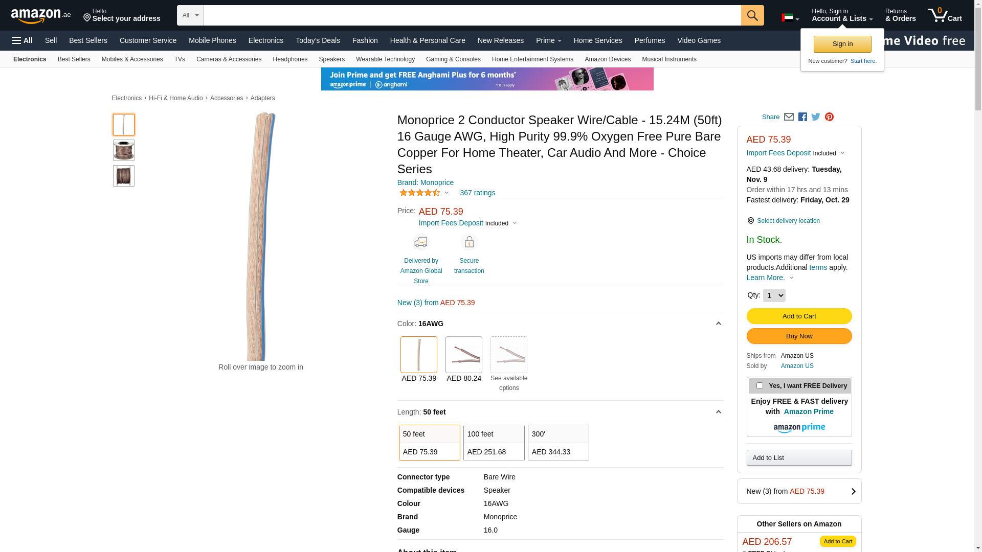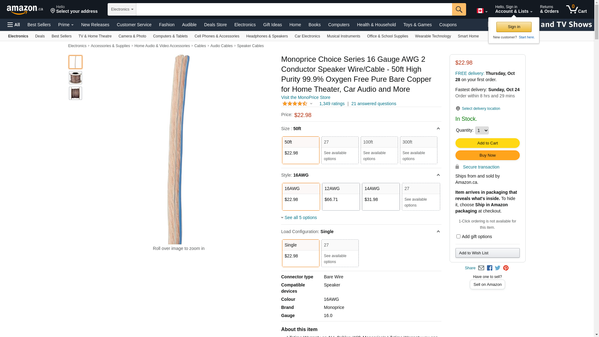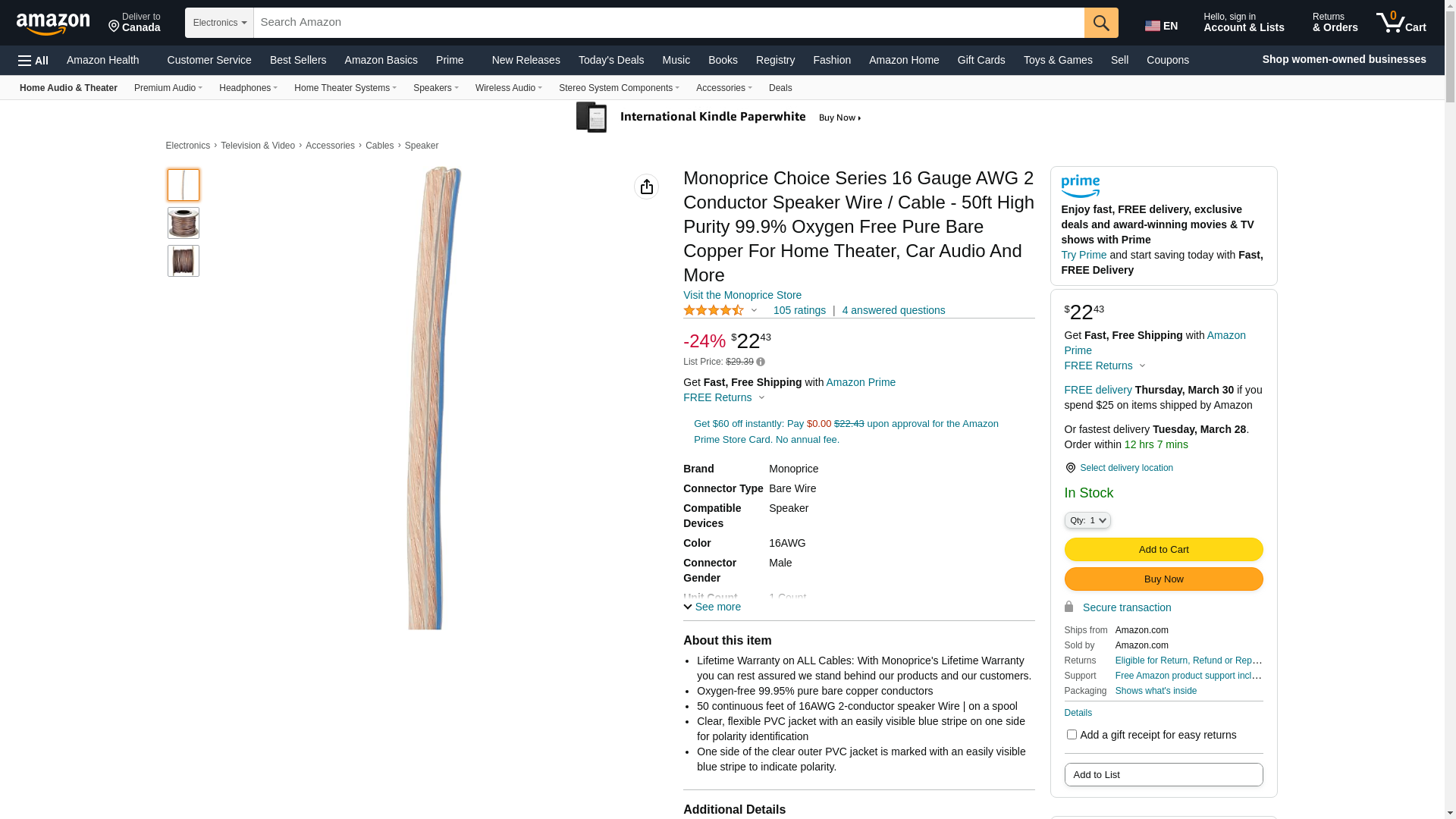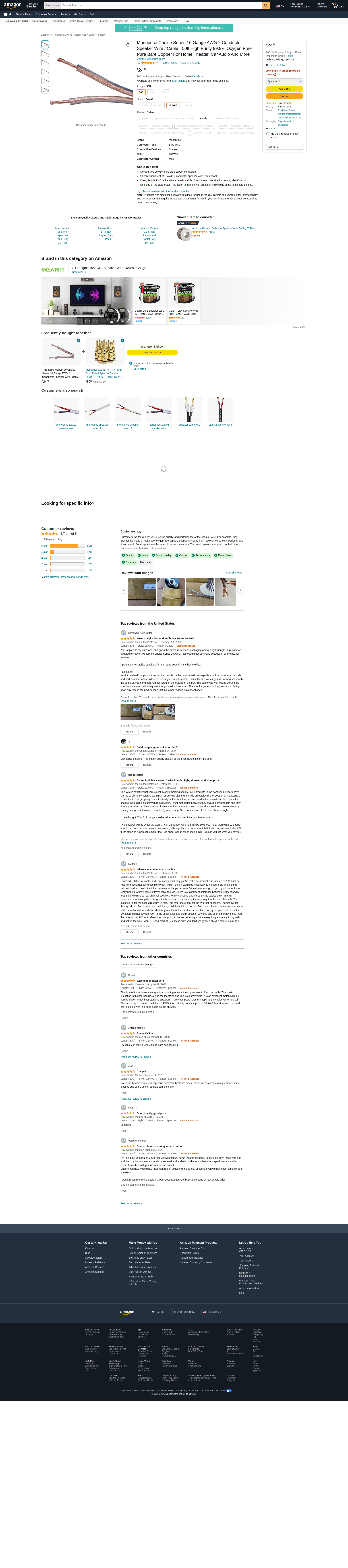 Monoprice 50-Feet 16AWG High-Purity Oxygen-Free Copper Speaker Wire. Conductors made of high-purity (greater than 99....
