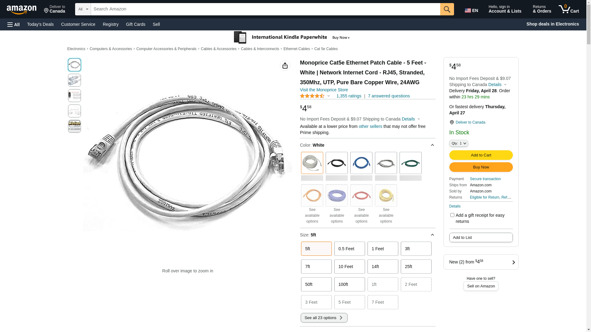 Monoprice 5-Feet 24AWG Cat5e 350MHz UTP Bare Copper Ethernet Network Cable, White (103382). Monoprice Cat5e fixed len...