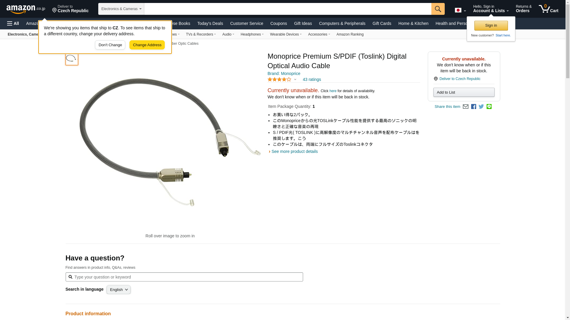 | Feature | Experience superb sonic clarity and accurate musical reproduction with this Optical Toslink cable from Monoprice |