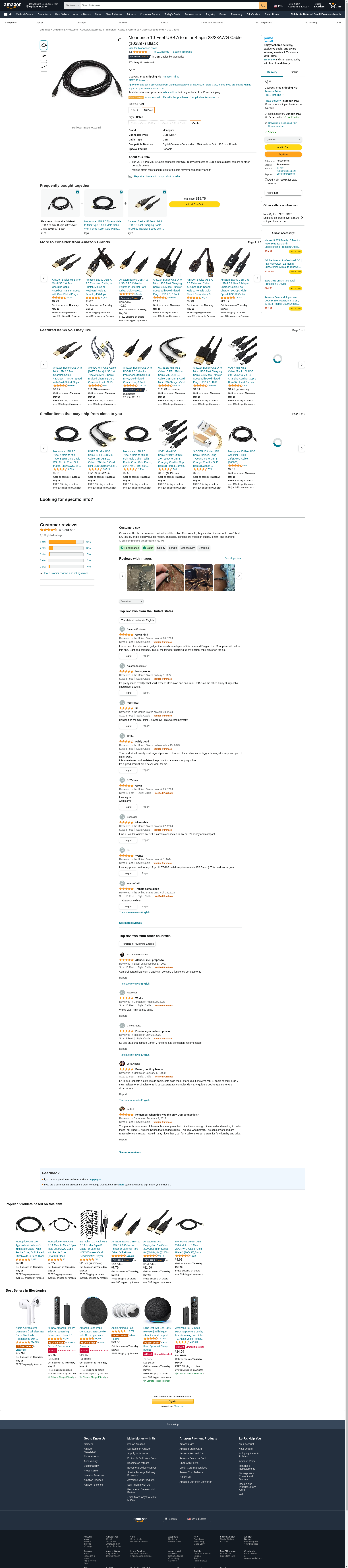 Monoprice 10-Feet USB A to mini-B 5pin 28/28AWG Cable (103897) Black
