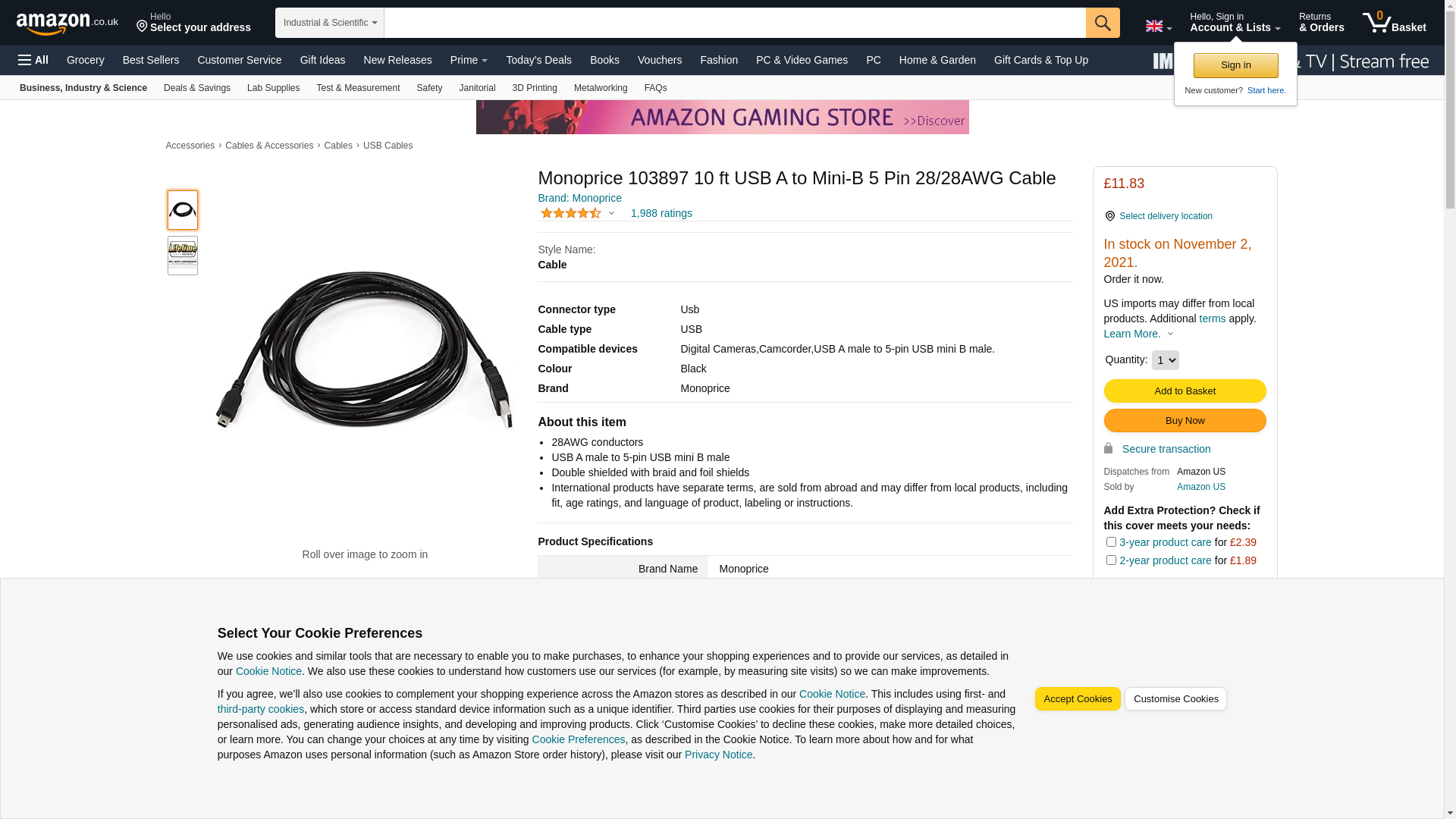 | Feature | The USB 5-Pin Mini-B Cable connects your USB-ready computer or USB hub to a digital camera or other portable device |