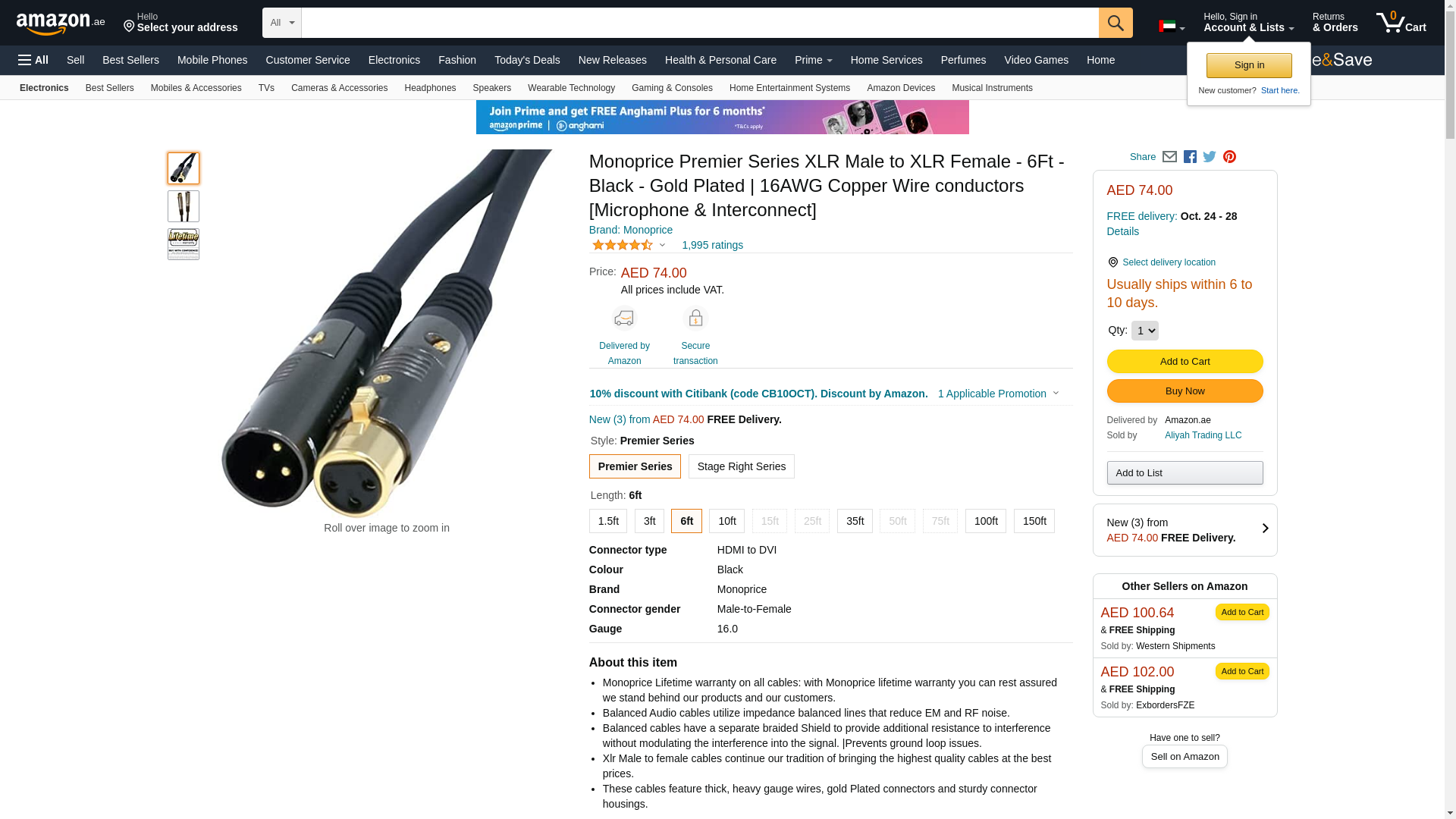 Monoprice 104751 6-Feet Premier Series XLR Male to XLR Female 16AWG Cable. Monoprice's line of Professional Audio cab...