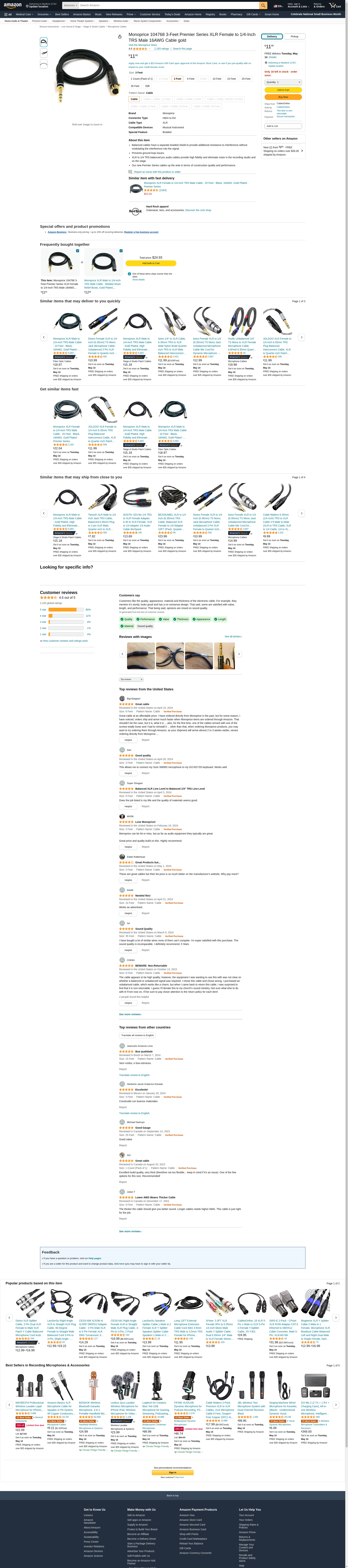 | Feature | "Monoprice's line of Professional Audio cables brings you high performance cables at rock bottom prices" |