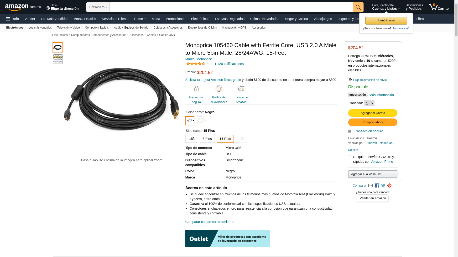 MONOPRICE, INC. 5460 USB 2 A M TO MICRO M CABLE 15FT