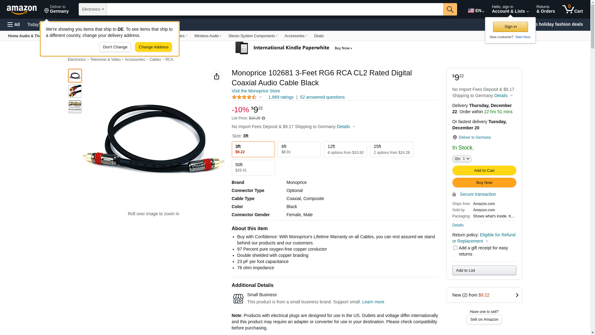 | Feature | This Digital Coax Cable is made from premium quality RG-6/U with double copper braid shielding |