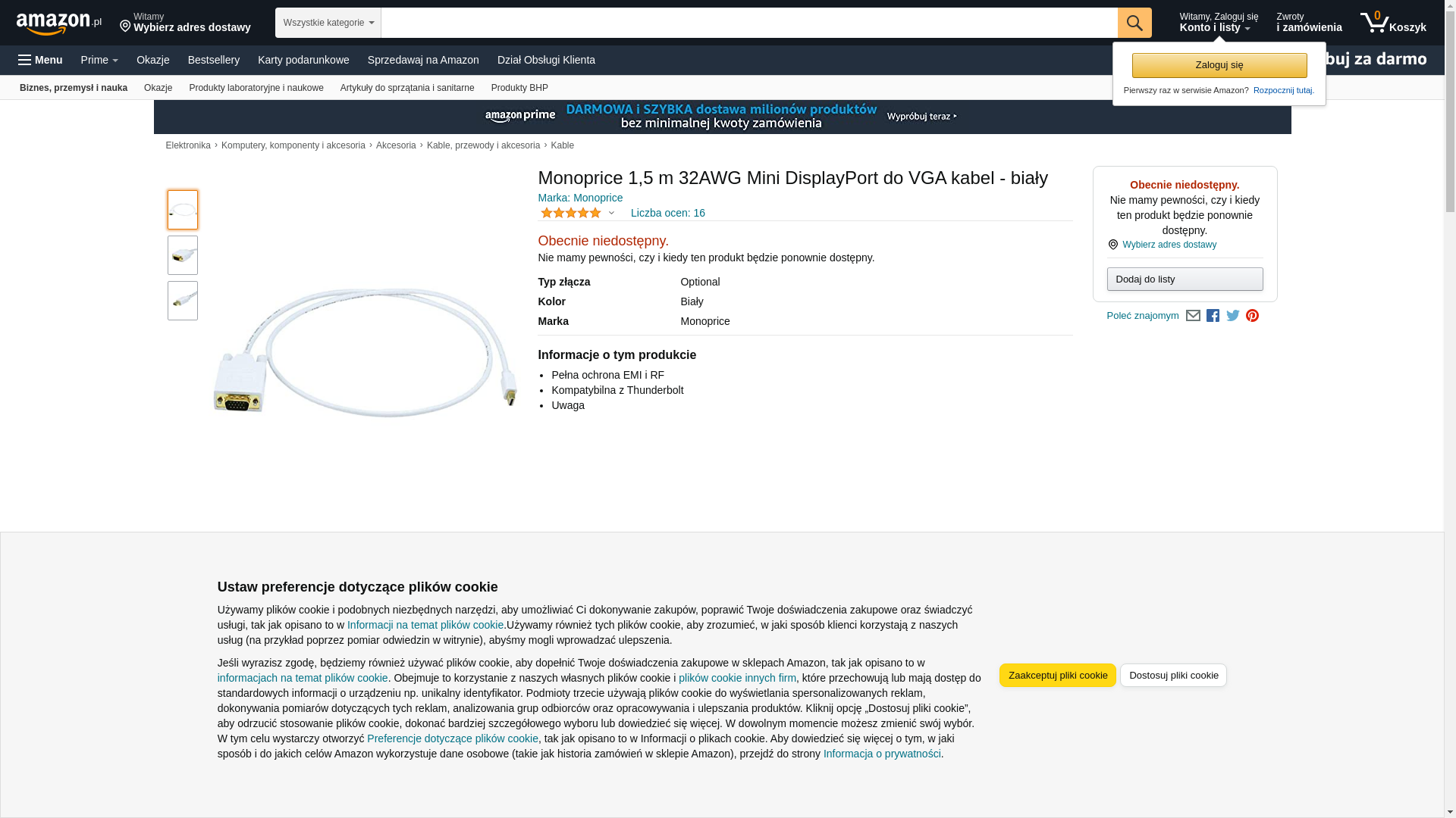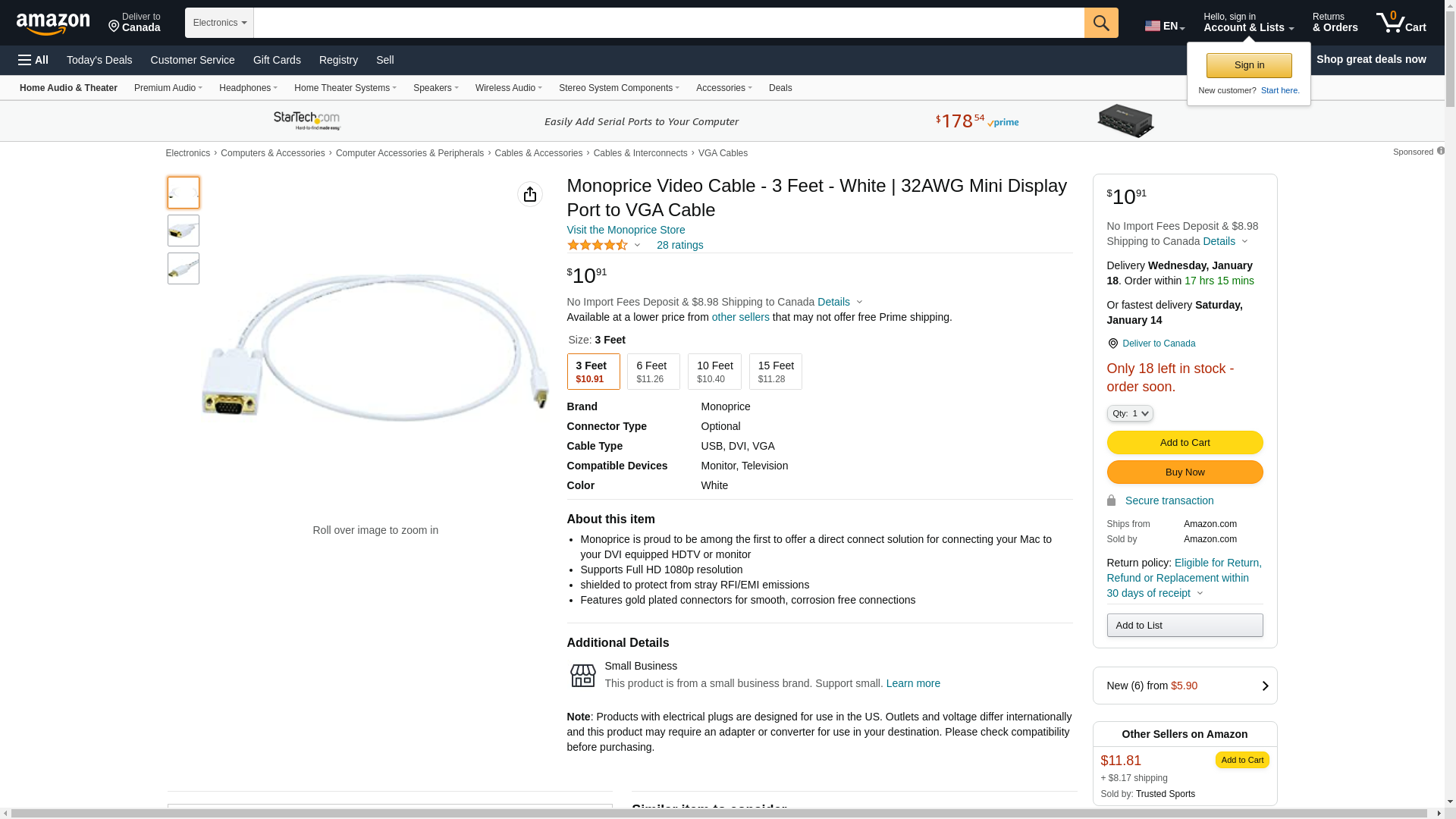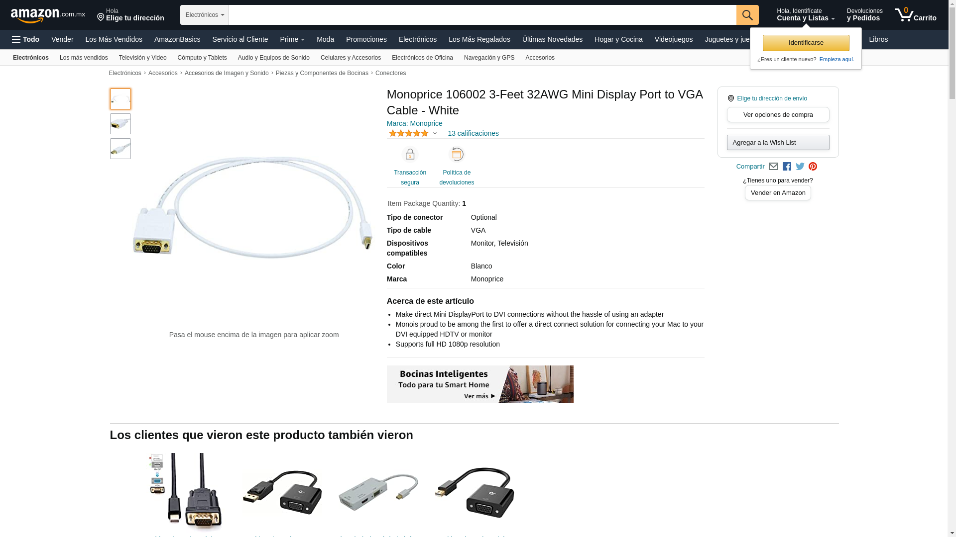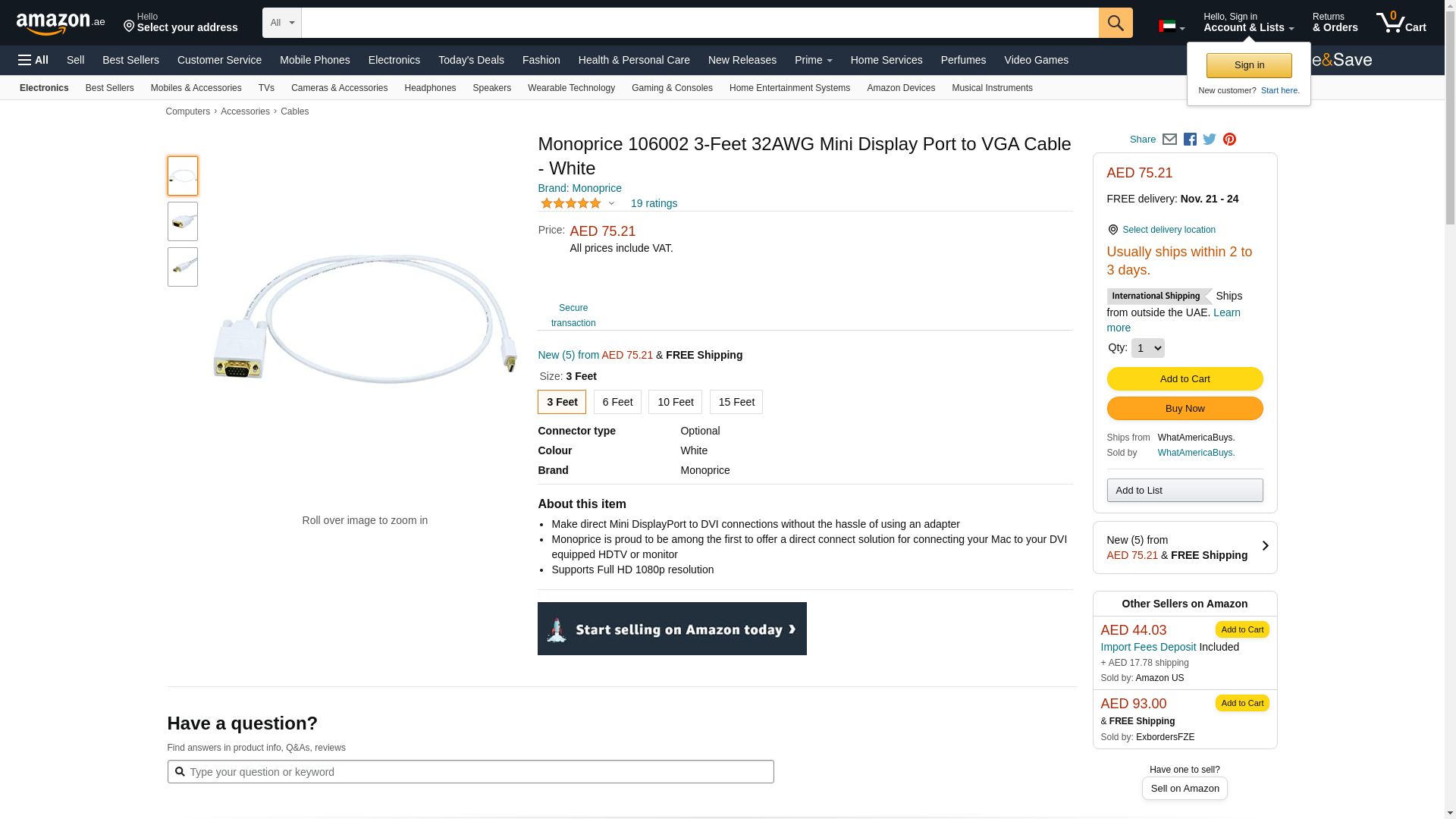 Monoprice 106002 3-Feet 32AWG Mini Display Port to VGA Cable - White. Make direct Mini DisplayPort to DVI connections...