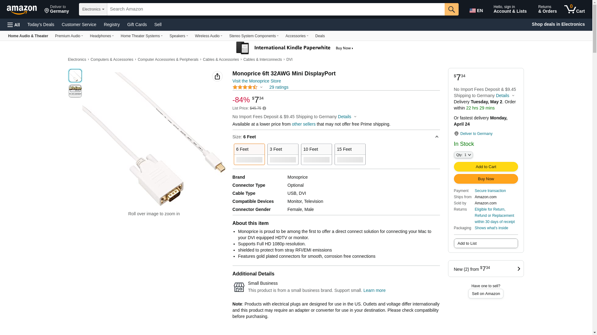Monoprice 6ft 32AWG Mini DisplayPort. Make direct Mini DisplayPort to DVI connections without the hassle of using an ...