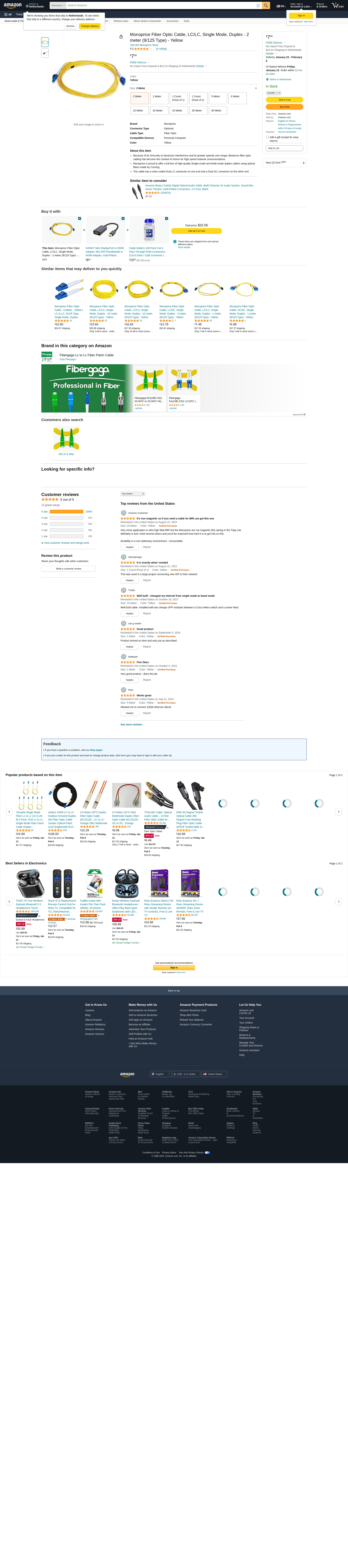 Monoprice Fiber Optic Cable, LC/LC, Single Mode, Duplex - 2 meter (9/125 Type) - Yellow (2 Pack)
