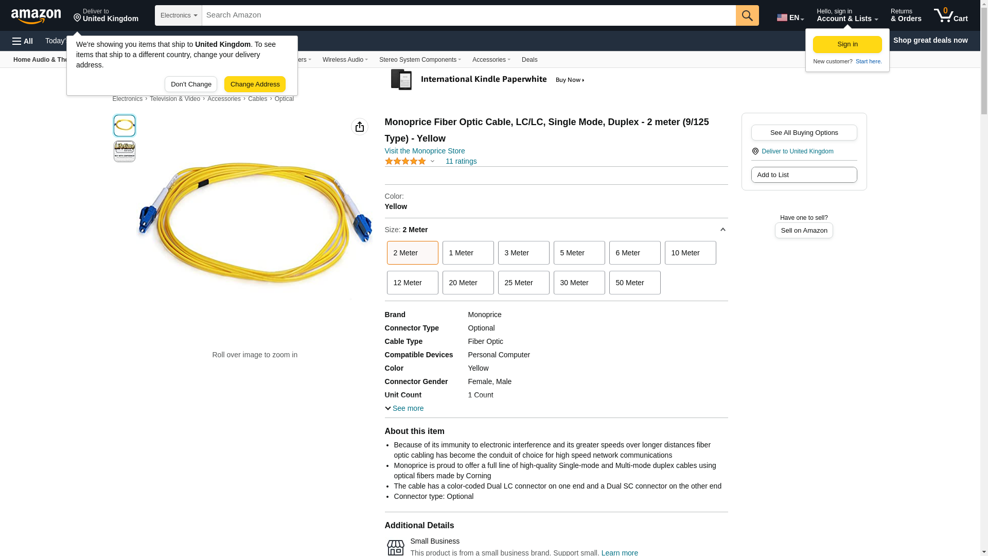 Monoprice Fiber Optic Cable, LC/LC, Single Mode, Duplex - 2 meter (9/125 Type) - Yellow
