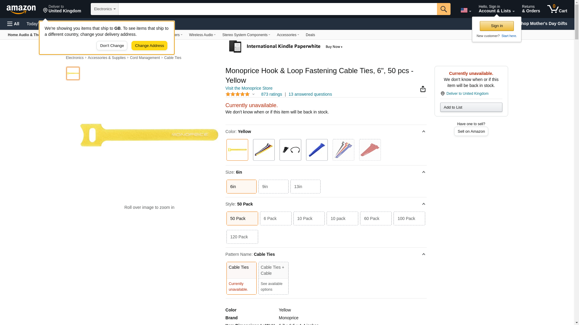 Monoprice Hook & Loop Fastening Cable Ties, 6", 50 pcs - Yellow. Organize your wires and cables with reusable Hook & ...