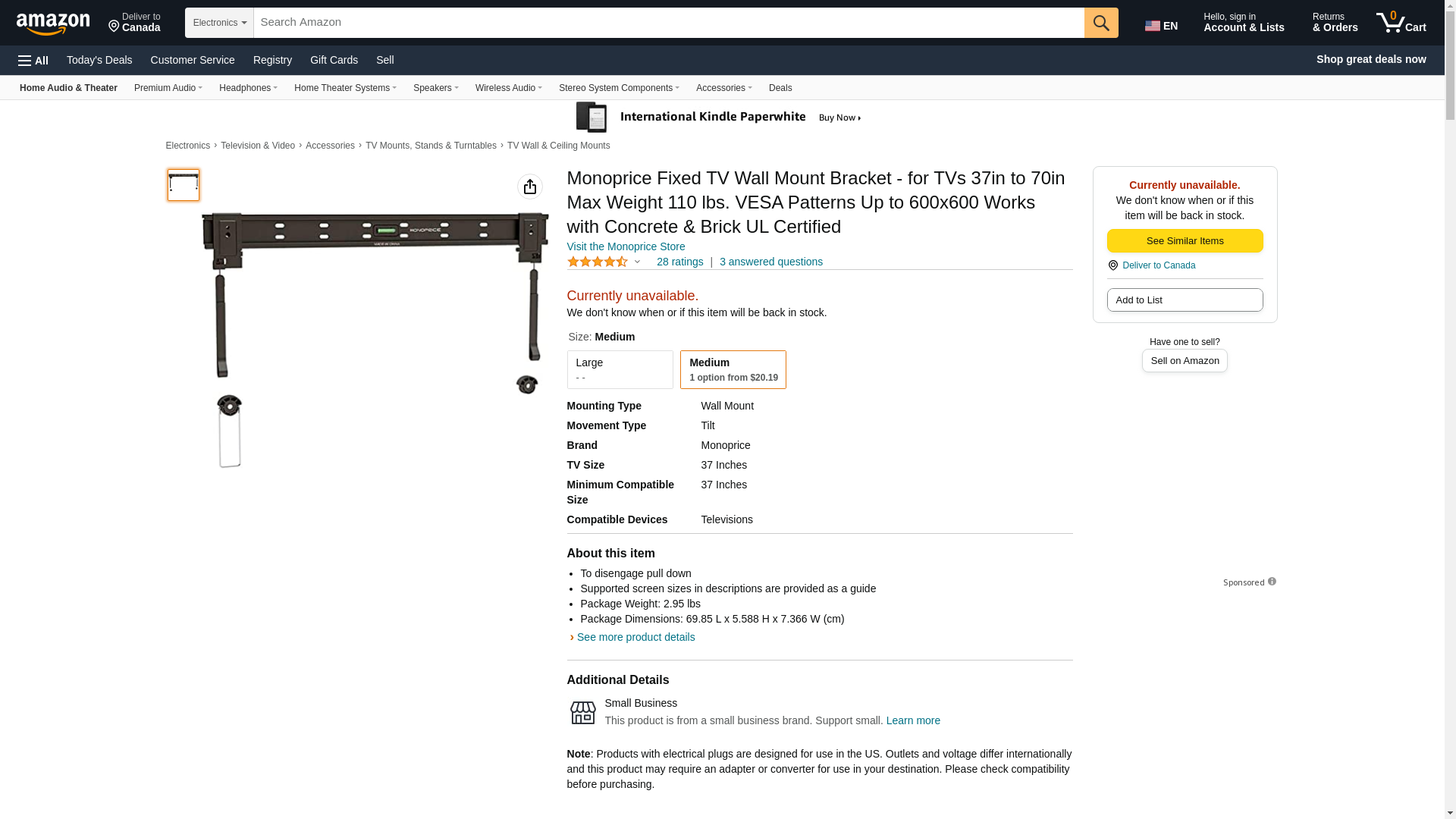 Monoprice Fixed TV Wall Mount Bracket - for TVs 37in to 70in Max Weight 110 lbs. VESA Patterns Up to 600x600 Works with Concrete & Brick UL Certified