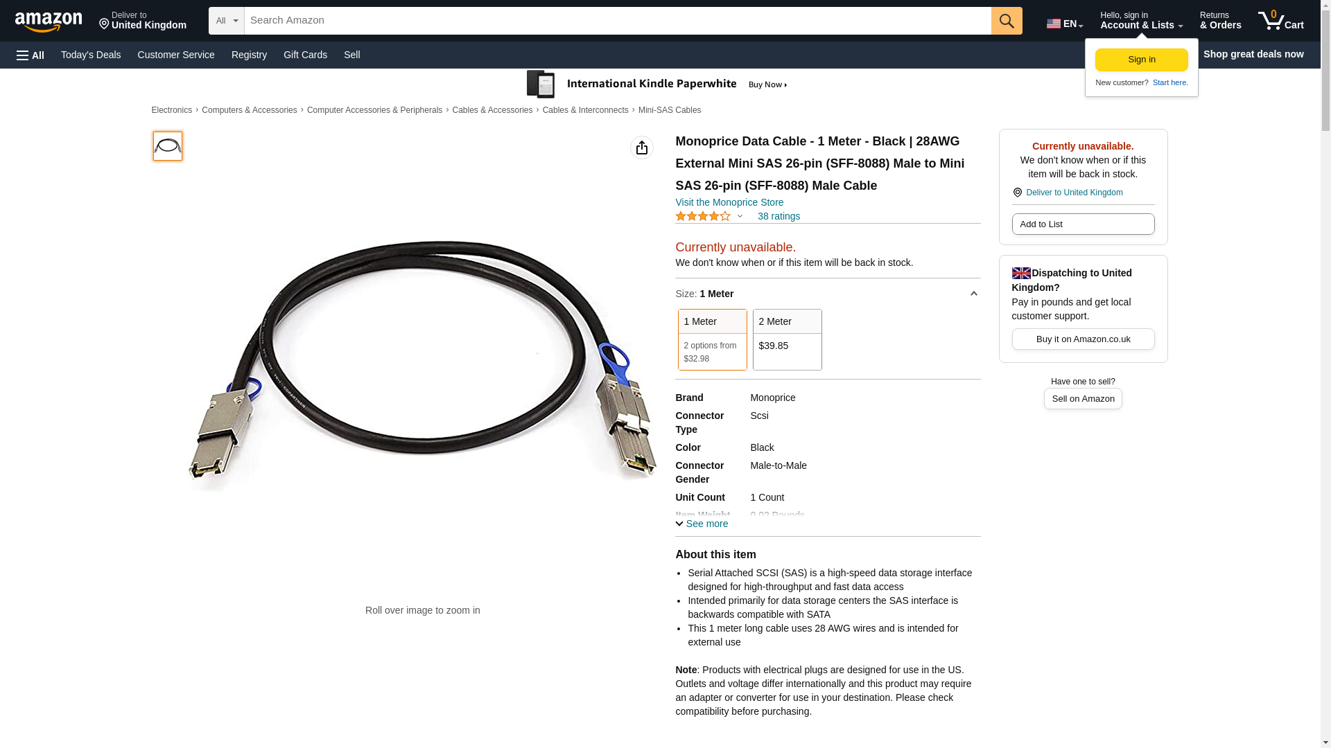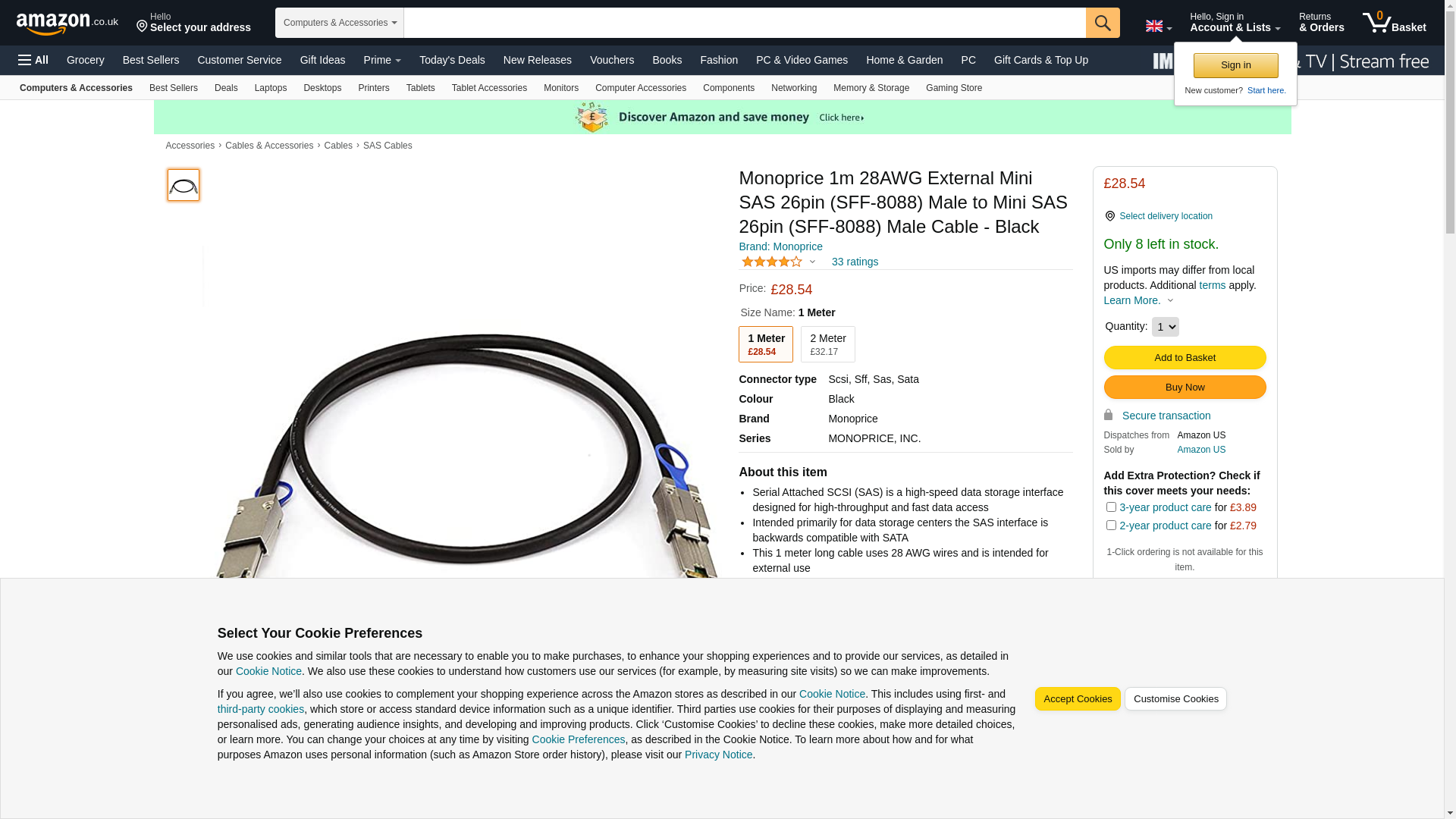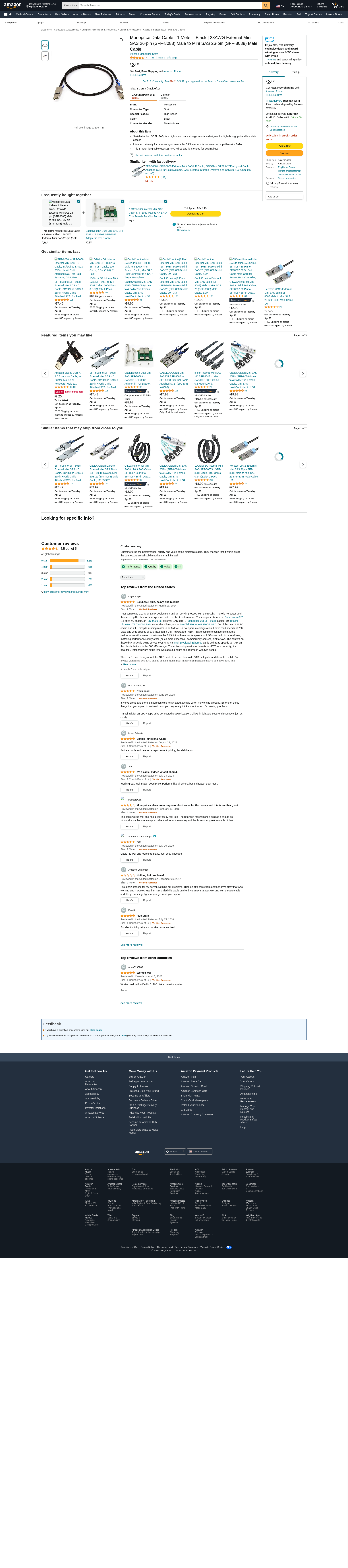 Monoprice Data Cable - 1 Meter - Black | 28AWG External Mini SAS 26-pin (SFF-8088) Male to Mini SAS 26-pin (SFF-8088) Male Cable