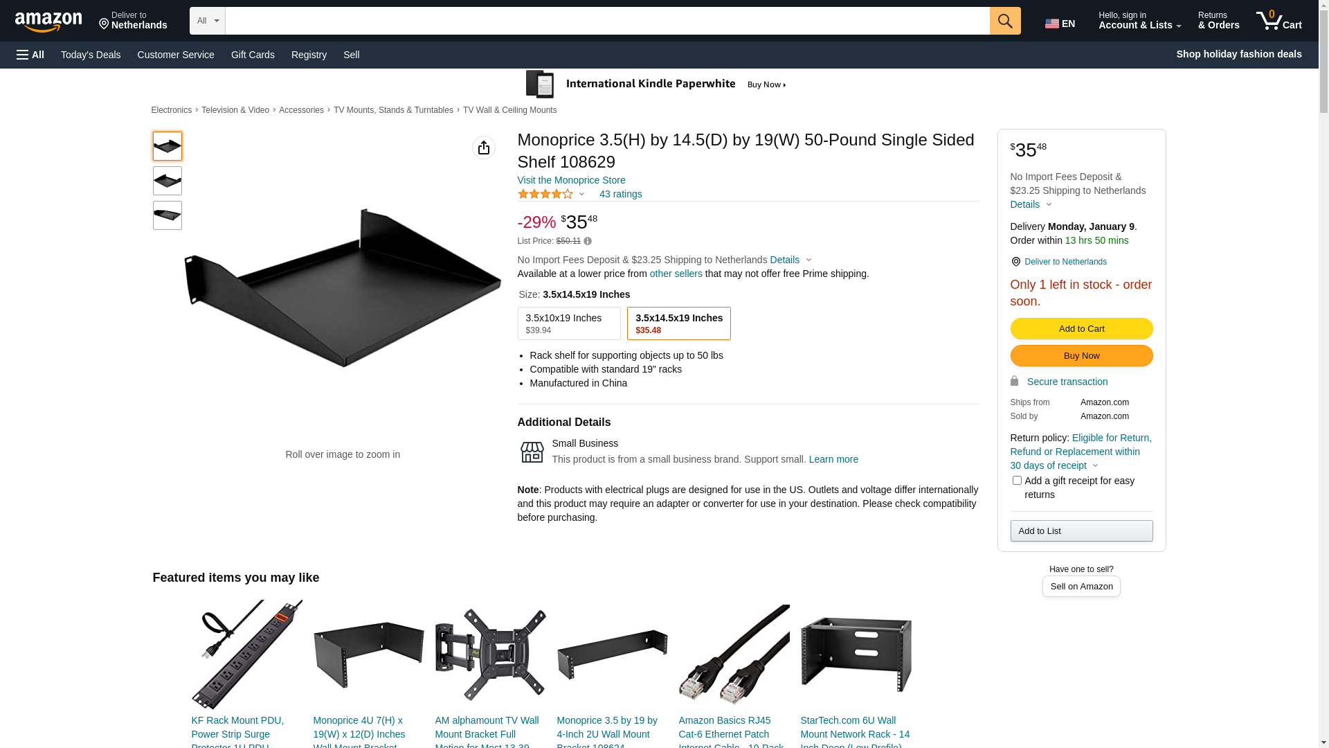 Monoprice Single Sided Shelf, 3.5(H) x 14.5(D) x 19(W), 50 lbs. Max Capacity