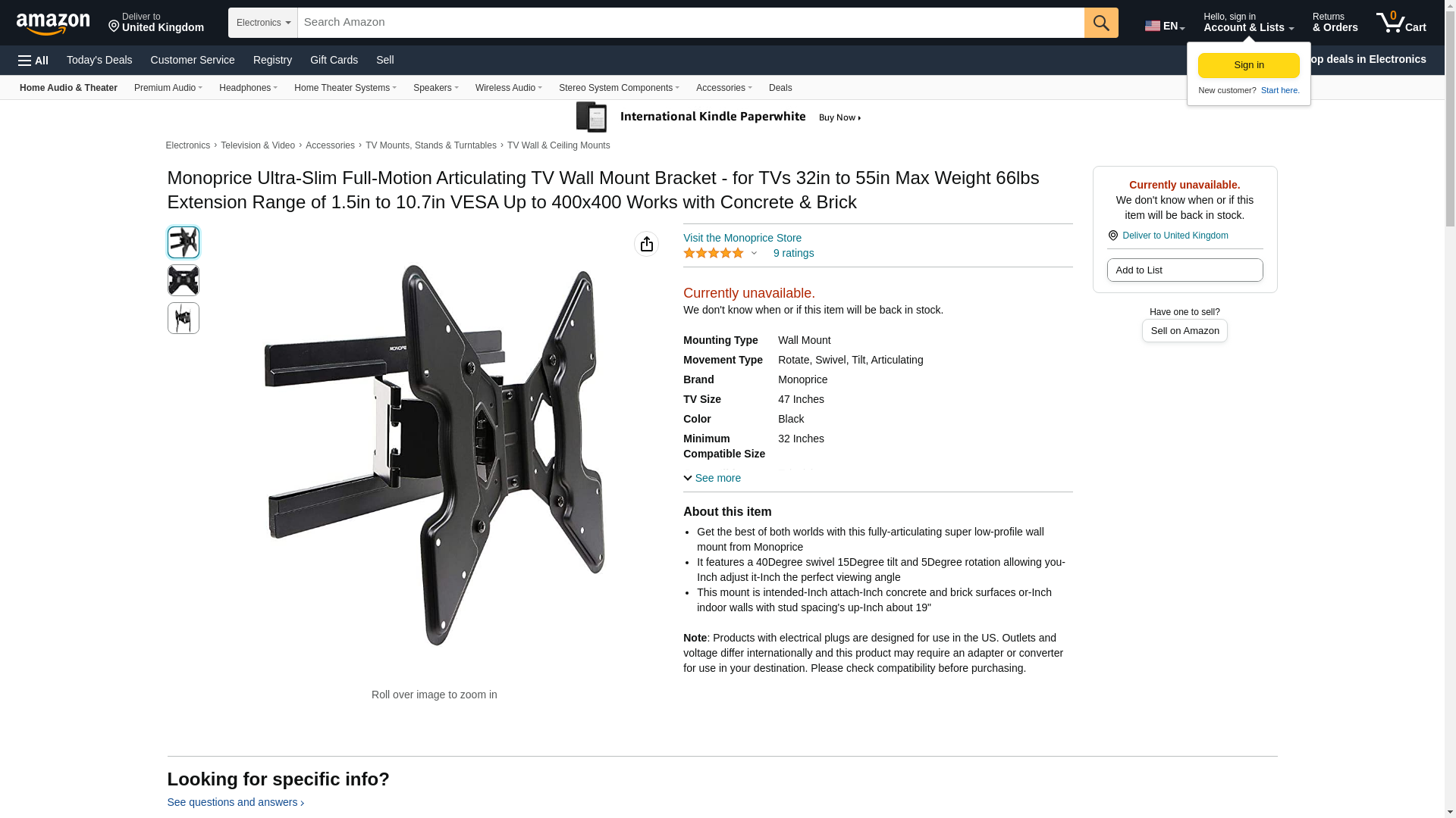 | Feature | Get the best of both worlds with this fully-articulating super low-profile wall mount from Monoprice |