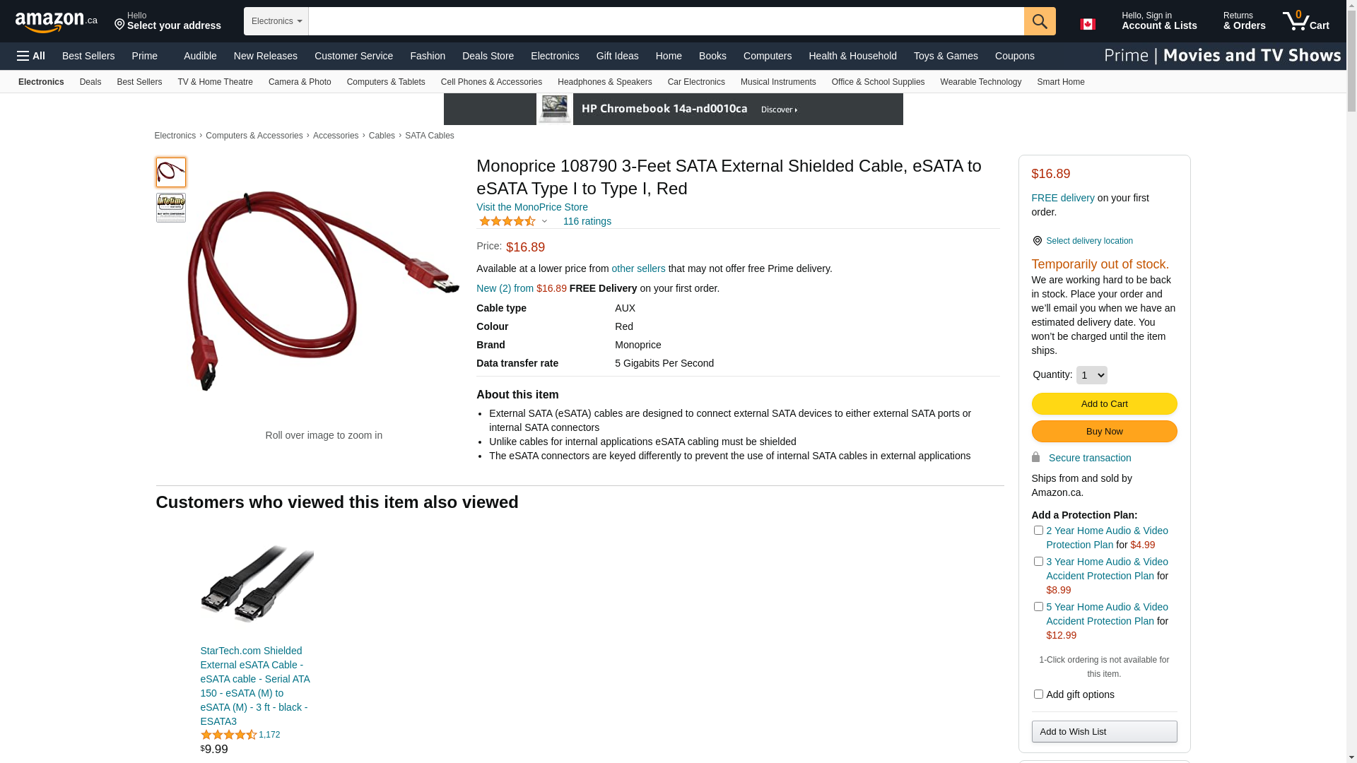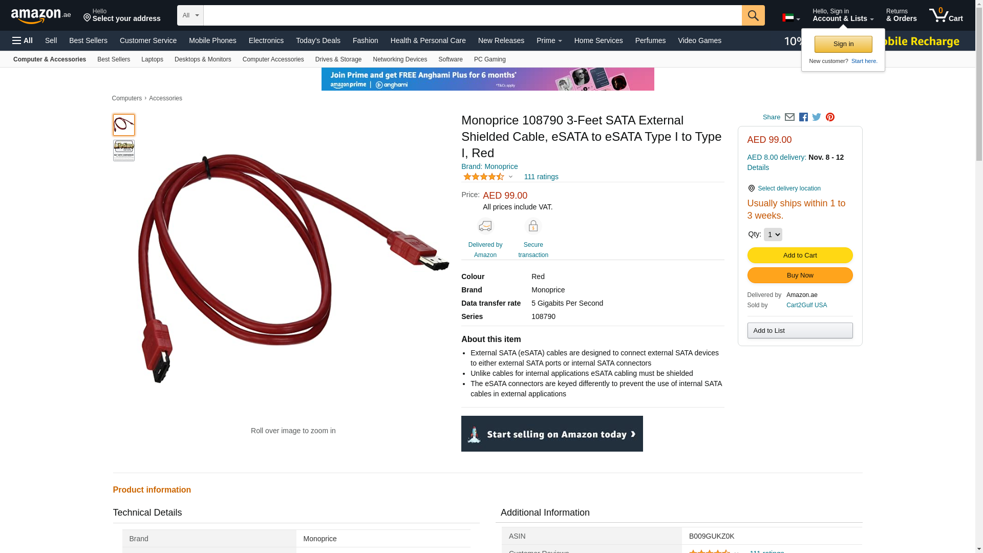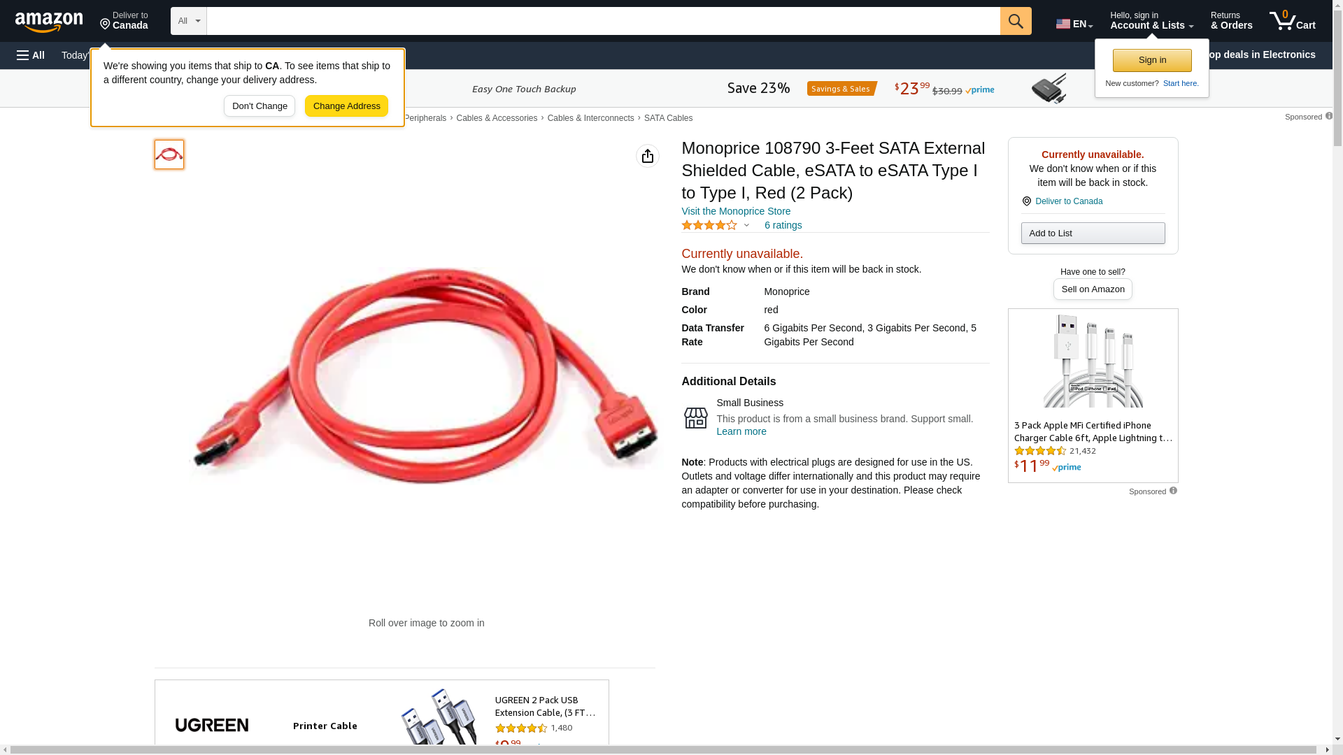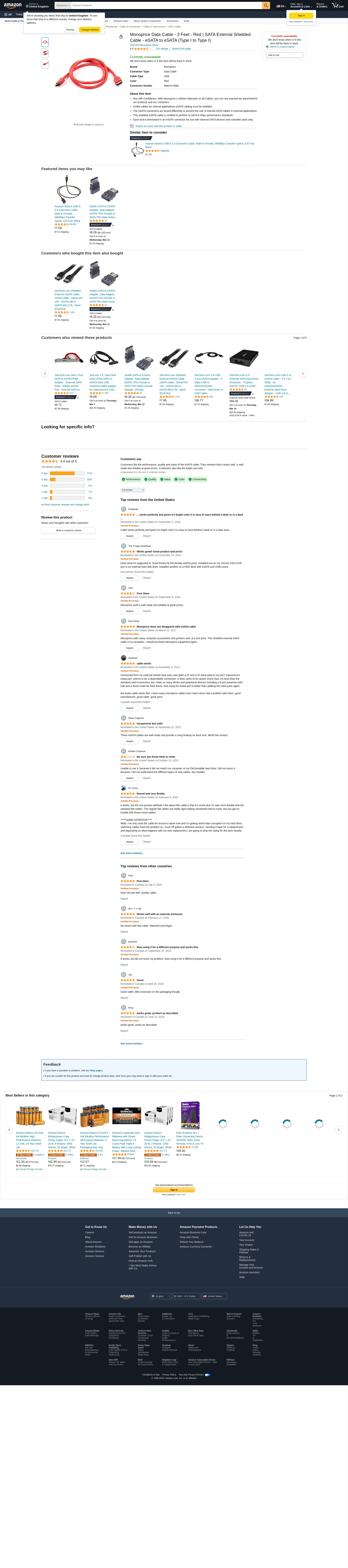 Monoprice 108790 3-Feet SATA External Shielded Cable, eSATA to eSATA Type I to Type I, Red (2 Pack)