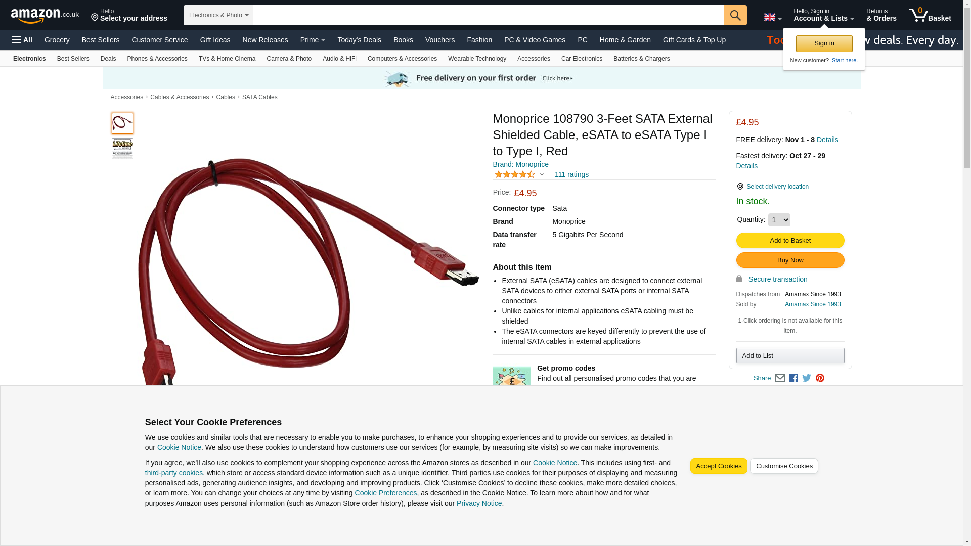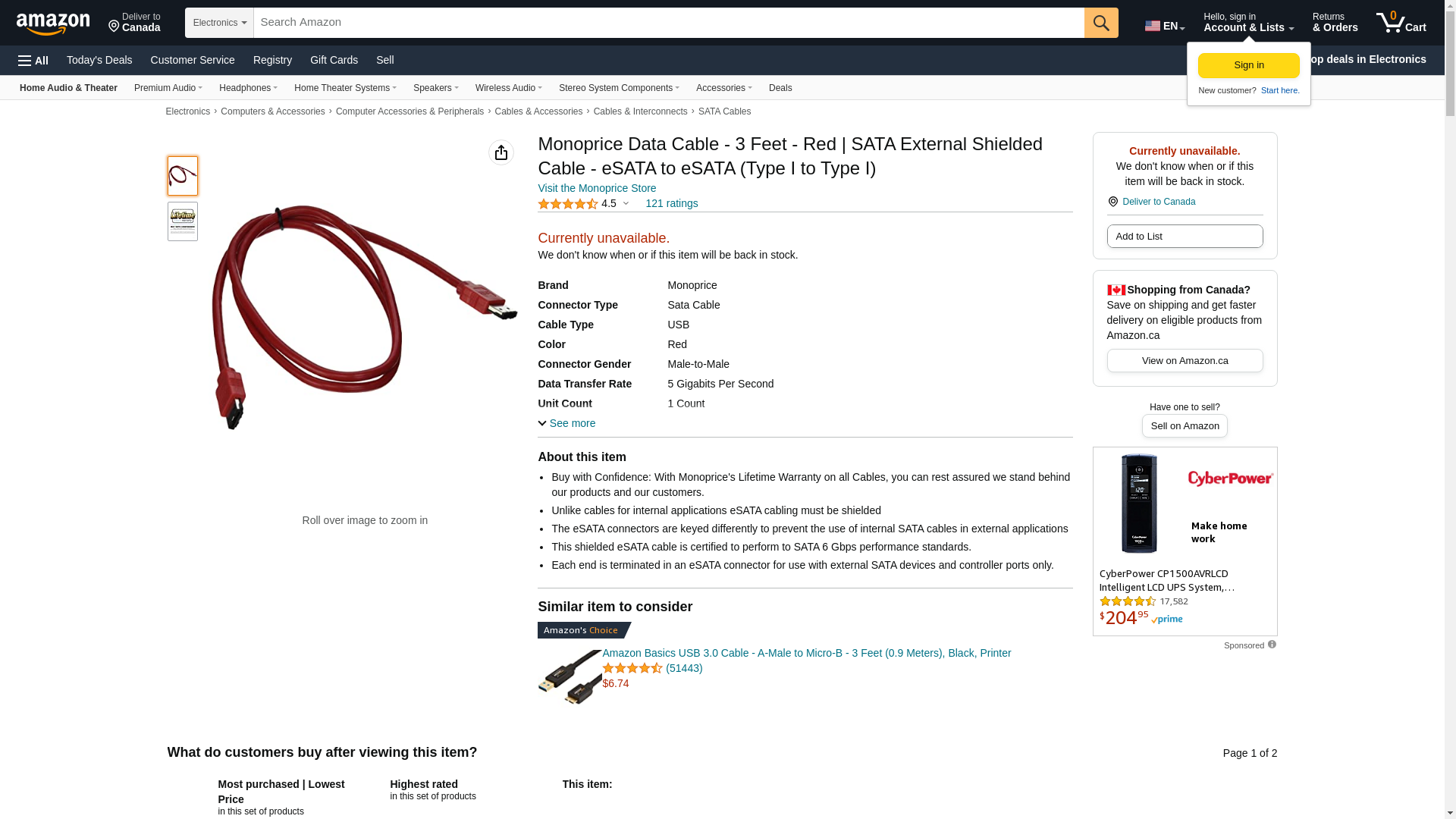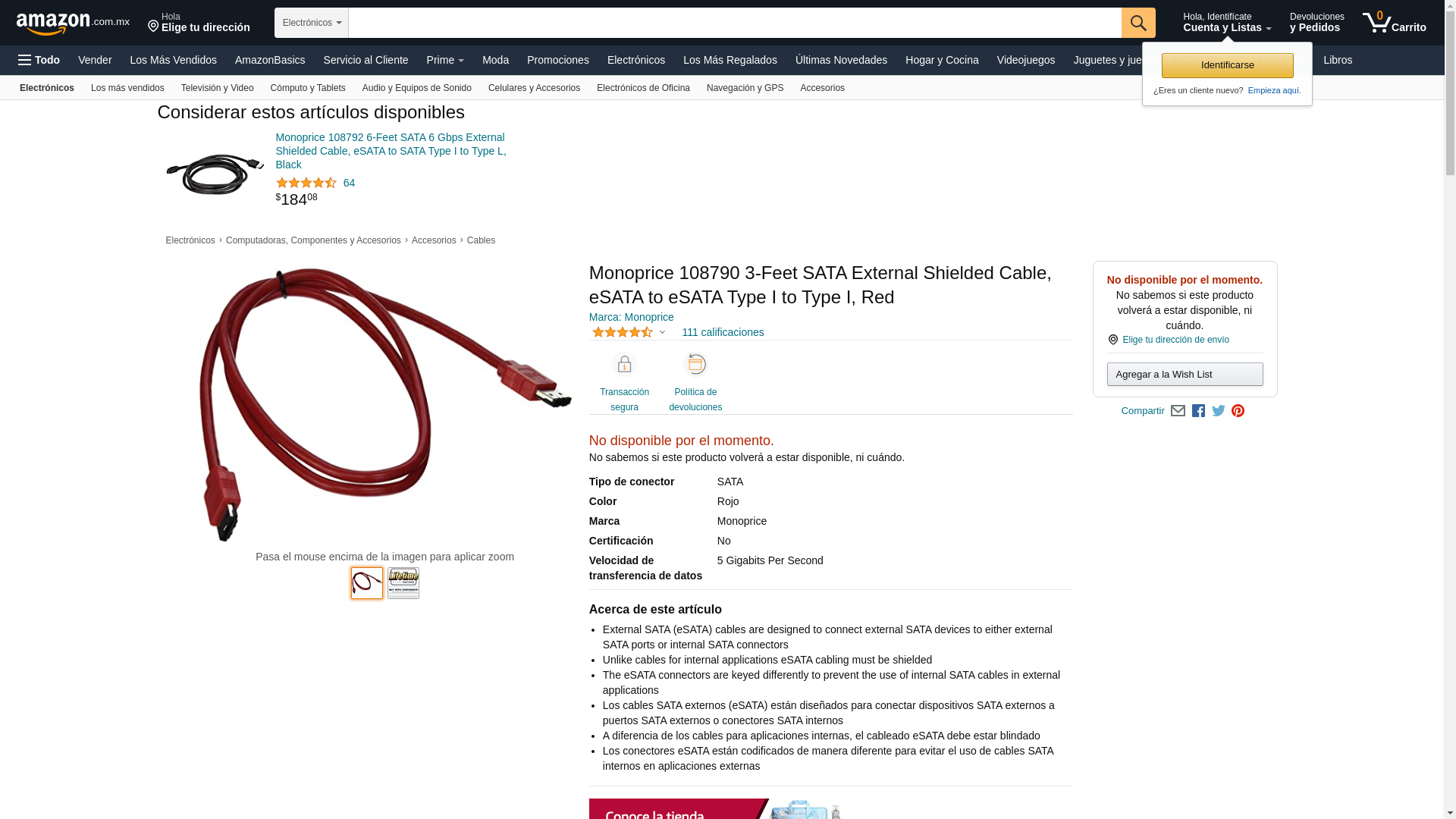 Monoprice Data Cable - 3 Feet - Red | SATA External Shielded Cable - eSATA to eSATA (Type I to Type I)