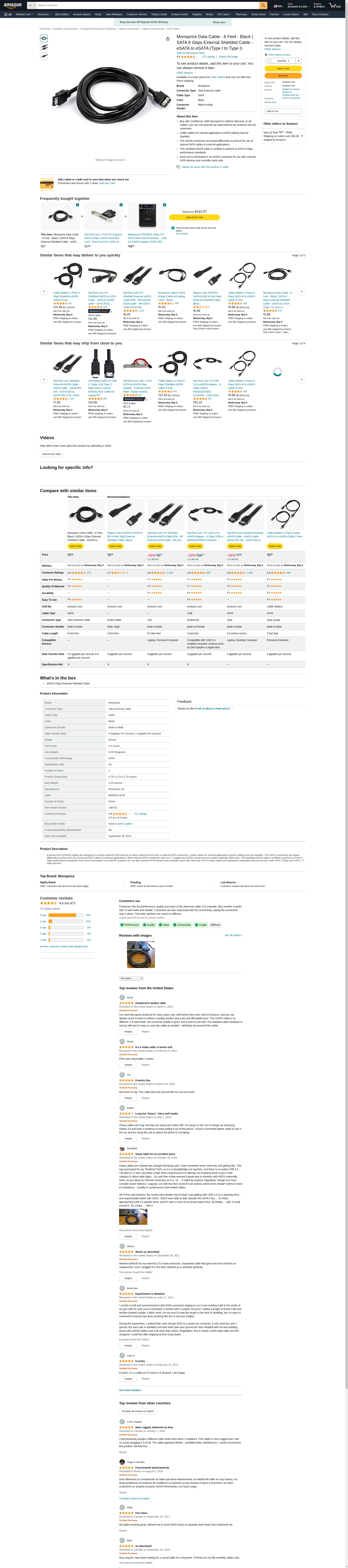 Monoprice Data Cable - 6 Feet - Black | SATA 6 Gbps External Shielded Cable - eSATA to eSATA (Type I to Type I)