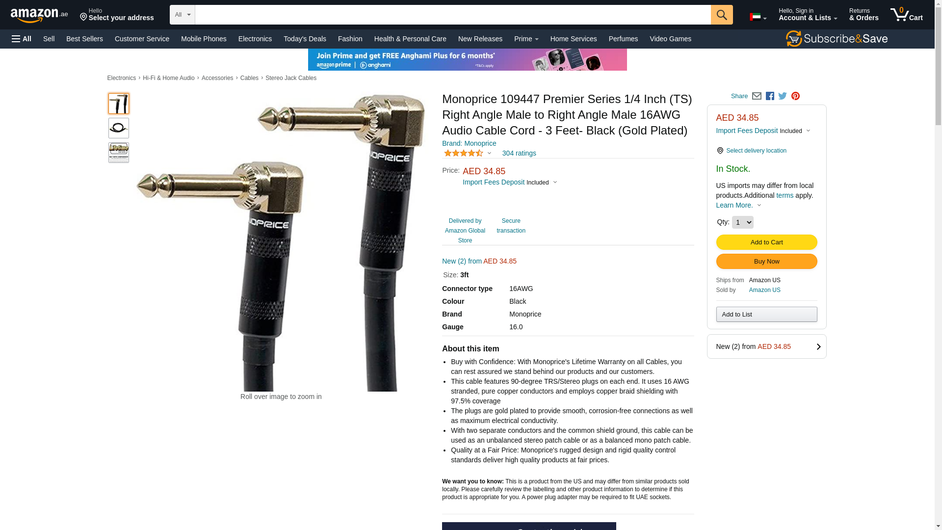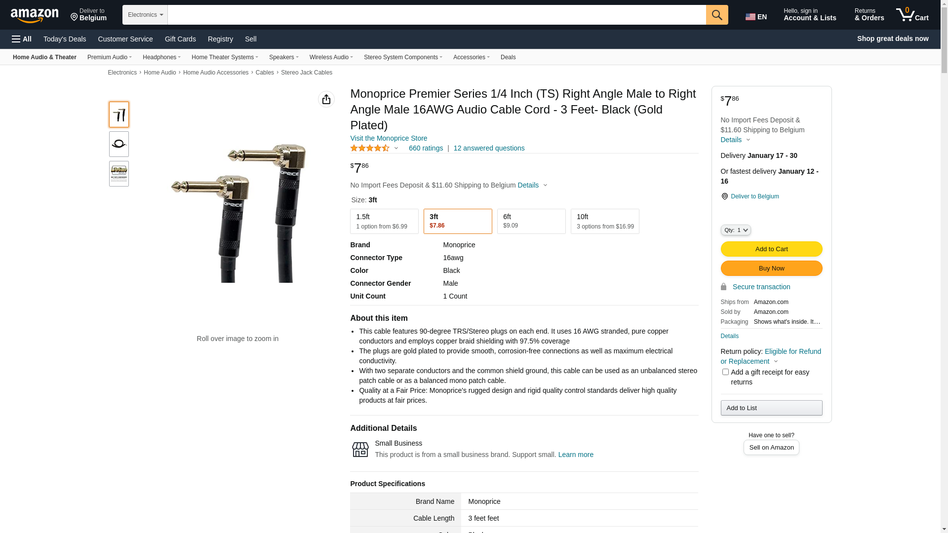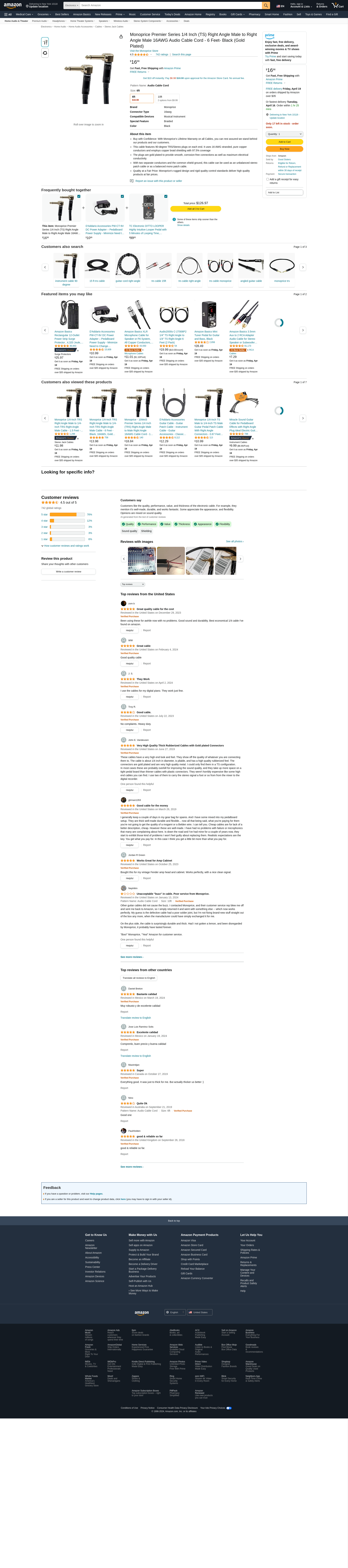 | Feature | Connect your musical instruments and effects processors with this Premium 1/4" TS Patch Cable with 90-degree connectors from Monoprice! |