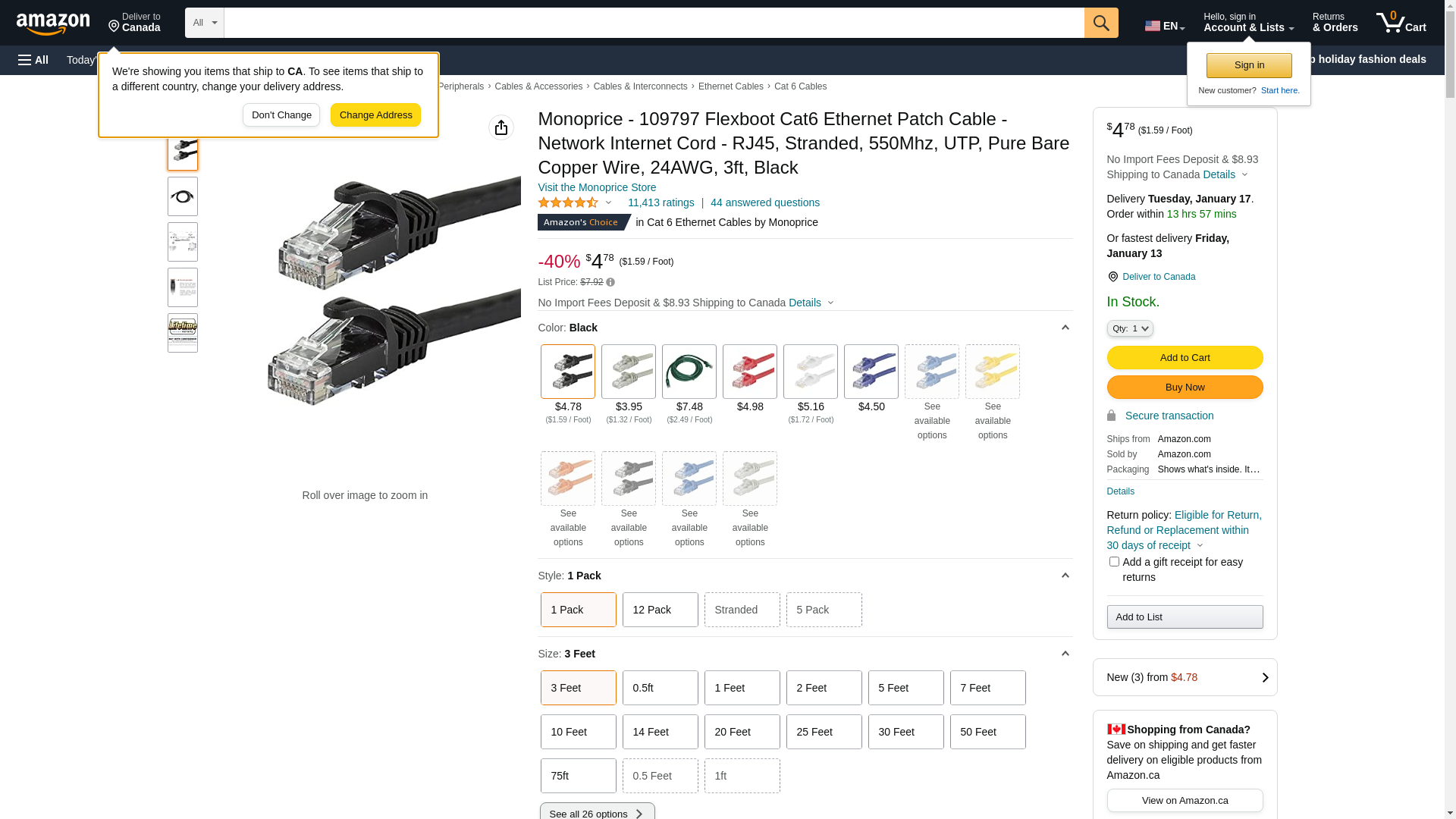 Monoprice - 109797 Flexboot Cat6 Ethernet Patch Cable - Network Internet Cord - RJ45, Stranded, 550Mhz, UTP, Pure Bare Copper Wire, 24AWG, 3ft, Black