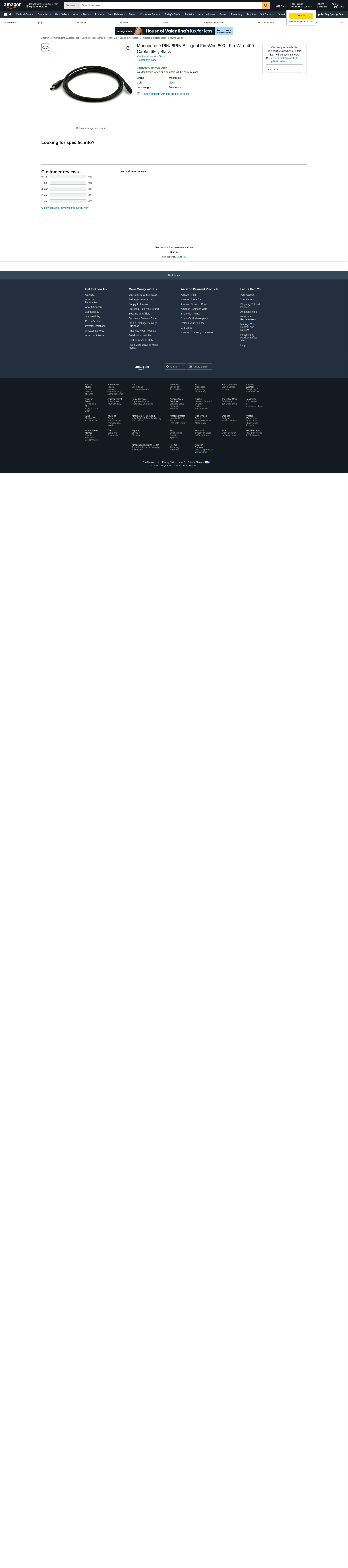 MONOPRICE, INC. PIN-9/6-PIN FW 800 - FW 400 CBLE6FBLACK
