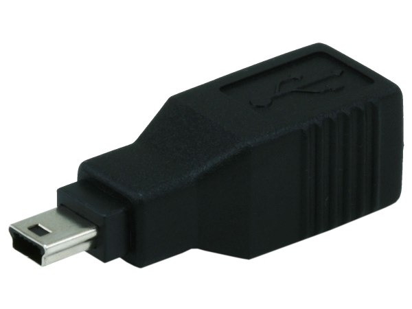- The adapter has a female regular type B on one side and a male Mini B 5 pin on the other.