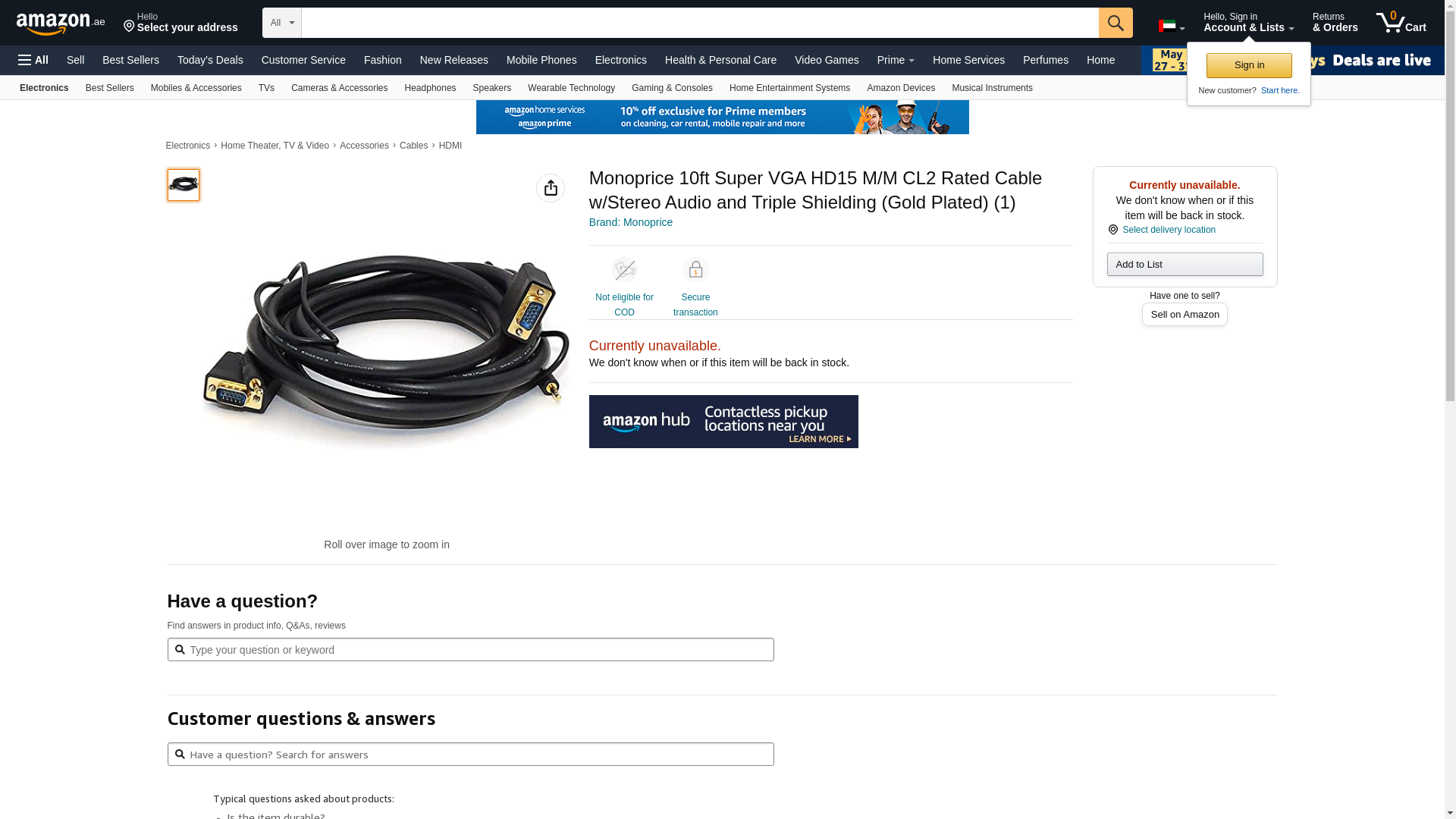 Monoprice 10ft Super VGA HD15 M/M CL2 Rated Cable w/ Stereo Audio and Triple Shielding (Gold Plated) (1)