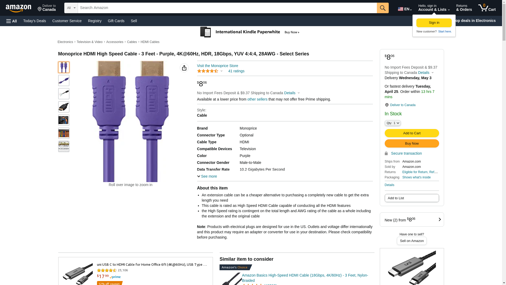 Buy Monoprice HDMI High Speed Cable - 3 Feet - Purple, 4K@60Hz, HDR, 18Gbps, YUV 4:4:4, 28AWG - Select Series: Everything Else - Amazon.com ? FREE DELIVERY possible on eligible purchases