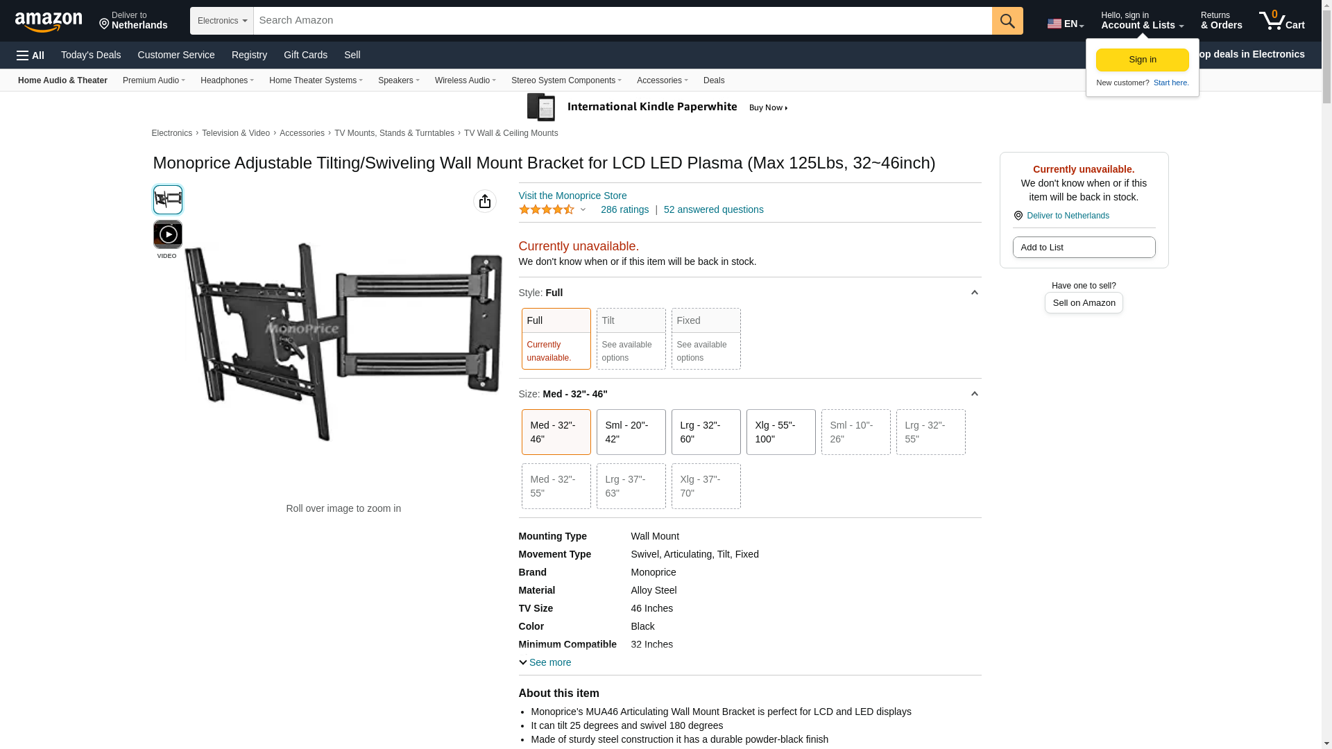 Buy Monoprice Adjustable Tilting/Swiveling Wall Mount Bracket for LCD LED Plasma (Max 125Lbs, 32~46inch): TV Wall & Ceiling Mounts - Amazon.com ? FREE DELIVERY possible on eligible purchases